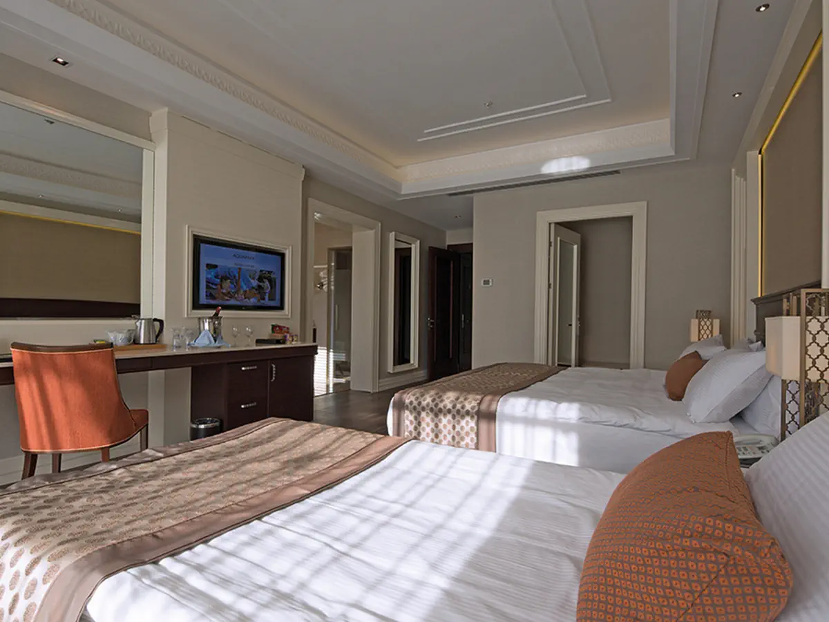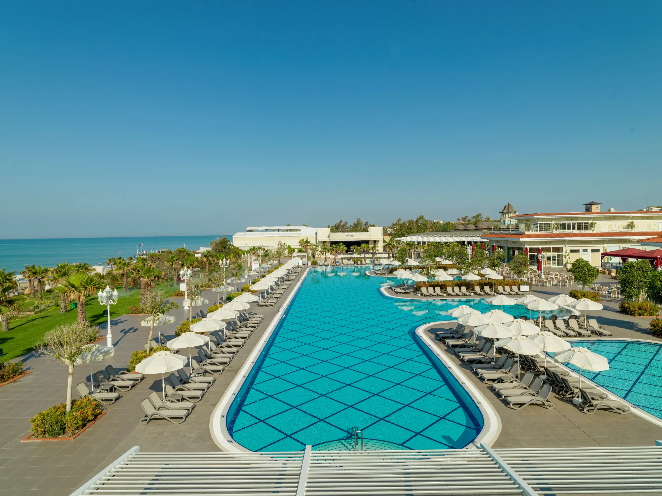Wyjątkowo luksusowy kompleks wakacyjny otoczony pięknym, palmowym ogrodem z rewelacyjnym widokiem na lazur Morza Śródziemnego. Doceniany za bardzo wysoki standard, ciekawą formułę family i niezwykle bogaty program animacji. Na najmłodszych gości czeka bajeczny aquapark ze zjeżdżalniami i mini klub Happyland. Miłośnikom aktywnego wypoczynku spodoba się rozbudowane zaplecze sportowo-rekreacyjne oraz duże centrum tenisowe. Znakomity wybór menu, tradycyjne specjały tureckie spożywane na słonecznym tarasie będą dopełnieniem szczęścia w tym wakacyjnym raju.