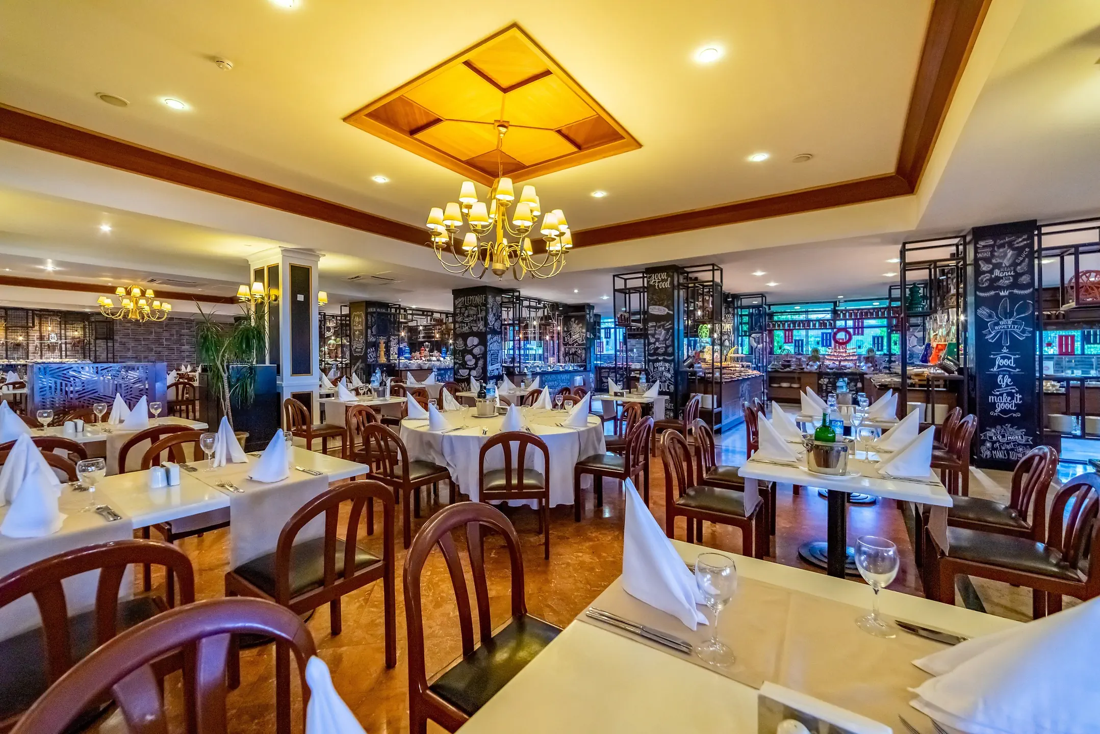 Śniadanie (07:00 - 10:00) - RESTRO MAIN RESTAURANT, stół szwedzki, Późne śniadanie (10:00 - 11:00) - RESTRO MAIN RESTAURANT, stół szwedzki, Obiad (12:30 - 14:30) - RESTRO MAIN RESTAURANT, stół szwedzki, Przekąski (11:00 - 16:00) - STREET SNACKS, stół szwedzki, Podwieczorek (10:00 - 00:00) - HAPPY MOMENTS DESSERT BAR, stół szwedzki, Kolacja (18:30 - 21:00) - RESTRO MAIN RESTAURANT, stół szwedzki, Późna kolacja (23:30 - 00:30) - RESTRO MAIN RESTAURANT, stół szwedzki, TRATTORIA ITALIAN A'LACARTE (19:00 - 21:30) (19:00 - 21:30), raz w tygodniu, Kuchnia: Włoska, Wymagana rezerwacja: Tak, SEA YOU FISH A LA CARTE (19:00 - 21:30) (19:00 - 21:30), raz w tygodniu, Kuchnia: owoce morza , Wymagana rezerwacja: Tak, ETHNO LOCAL A LA CARTE (19:00 - 21:30) (19:00 - 21:30), raz w tygodniu, Kuchnia: lokalna, Wymagana rezerwacja: Tak, LOBBY BAR (10:00 - 00:00), Napoje: alkohole lokalne, napoje bezalkoholowe (10:00 - 00:00), HAPPY MOMENTS DESSERT BAR (10:00 - 00:00), Napoje: alkohole lokalne, napoje bezalkoholowe (10:00 - 00:00), CHILL BAR (24h), Napoje: alkohole lokalne, napoje bezalkoholowe (24h), LOUNGE BAR (10:00 - 18:00), Napoje: alkohole lokalne, napoje bezalkoholowe (10:00 - 18:00), SNACK BAR (11:00 - 16:00), Napoje: napoje bezalkoholowe (11:00 - 16:00), BEACH BAR (10:00 - 18:00), Napoje: alkohole lokalne, napoje bezalkoholowe (10:00 - 18:00), POOL BAR (10:00 - 12:00), Napoje: alkohole lokalne, napoje bezalkoholowe (10:00 - 12:00), napoje bezalkoholowe, alkohole lokalne, lody, pakiety dla nowożeńców, pakiety urodzinowe (na życzenie), cukiernia