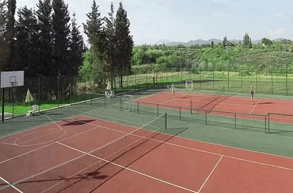 Korty do tenisa ziemnego, Oświetlenie kortów ¹⁾, Rakiety i piłki do tenisa ziemnego, Tenis stołowy, Rzutki, Koszykówka, Siatkówka plażowa, Minigolf, Miniboisko do piłki nożnej, Aerobik, Siłownia ¹⁾ - dodatkowo płatne