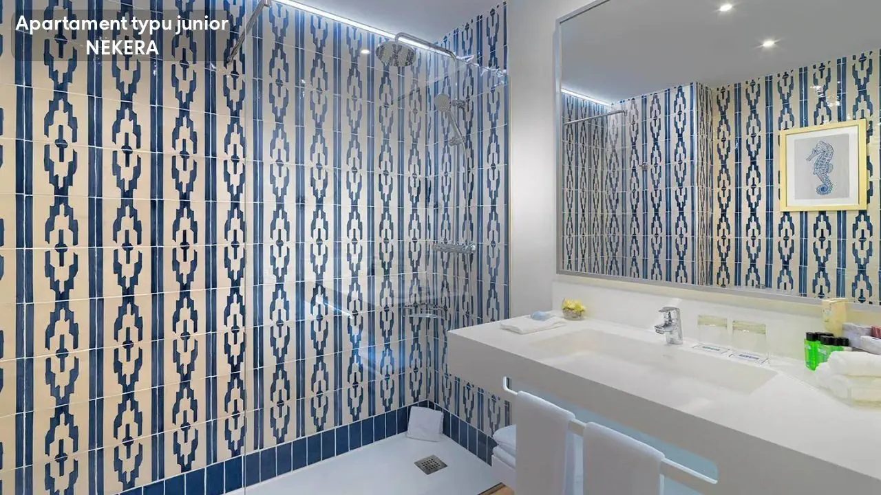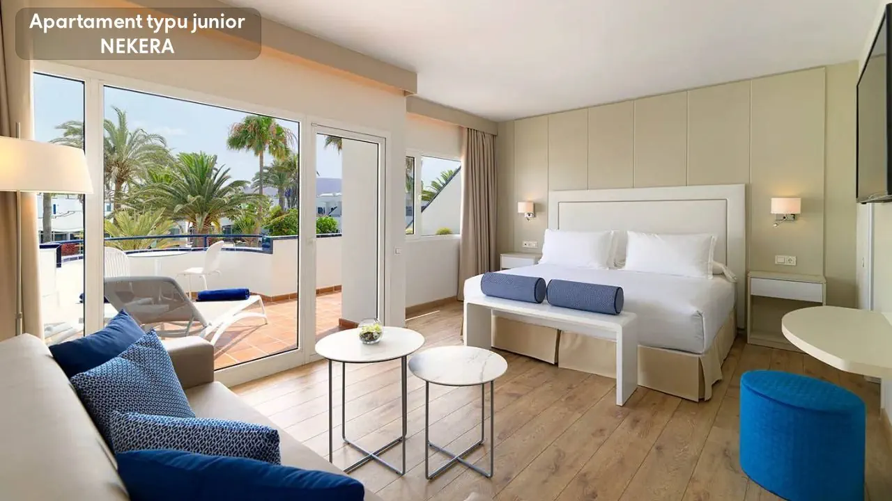 Pokój Dwuosobowy - powierzchnia ok. 20m2 - dla maksymalnie 2 osób - jedno łóżko podwójne - prywatna łazienka z prysznicem z deszczownicą - klimatyzacja - ekspres do kawy - bezpłatny sejf - bezpłatne WiFi - lodówka lub mini bar za dodatkową opłatą - TV - pokoje zewnętrzne posiadają taras Apartament Junior - powierzchnia ok. 30m2 - salon - taras z hamakami i widokami na basen - jedno łóżko podwójne lub dwa łóżka pojedyncze i rozkładana sofa - prywatna łazienka z prysznicem z deszczownicą - poza tym wyposażony tak, jak pokój Dwuosobowy