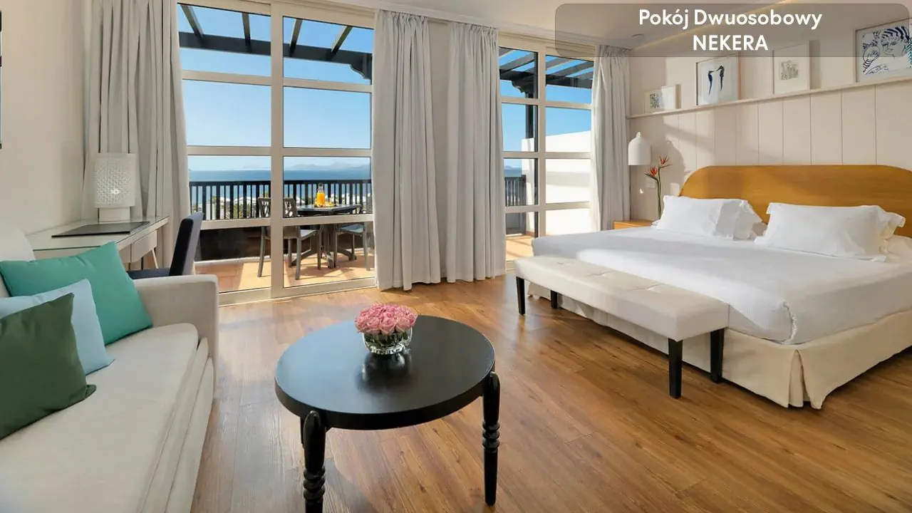 Pokój Dwuosobowy - ok. 34 m² - jedno łóżko podwójne typu Queen Size, lub dwa łóżka pojedyncze - dla maksymalnie 3 osób dorosłych i 1 dziecka - sofa rozkładana - łazienka z wanną lub prysznicem i suszarką do włosów - klimatyzacja - bezpłatne WiFi - bezpłatny sejf - czajnik - minibar za dodatkową opłatą - TV - biurko - w zależności od dostępności niektóre pokoje z tarasem lub balkonem Pokój Dwuosobowy tylko dla osób dorosłych - ok. 34 m² - jedno łóżko podwójne typu Queen Size, lub dwa łóżka pojedyncze - dla maksymalnie 3 osób dorosłych - sofa rozkładana - łazienka z wanną lub prysznicem i suszarką do włosów - klimatyzacja - bezpłatne WiFi - bezpłatny sejf - czajnik - minibar za dodatkową opłatą - TV - biurko - w zależności od dostępności niektóre pokoje z tarasem lub balkonem