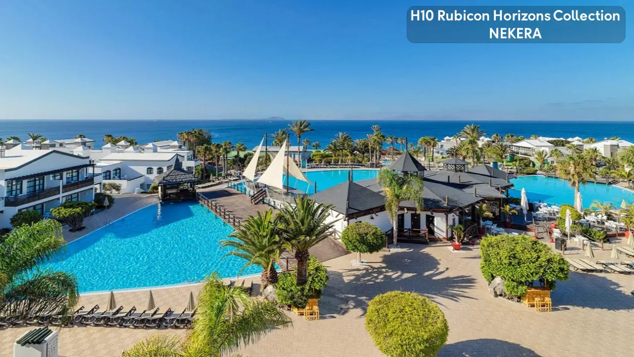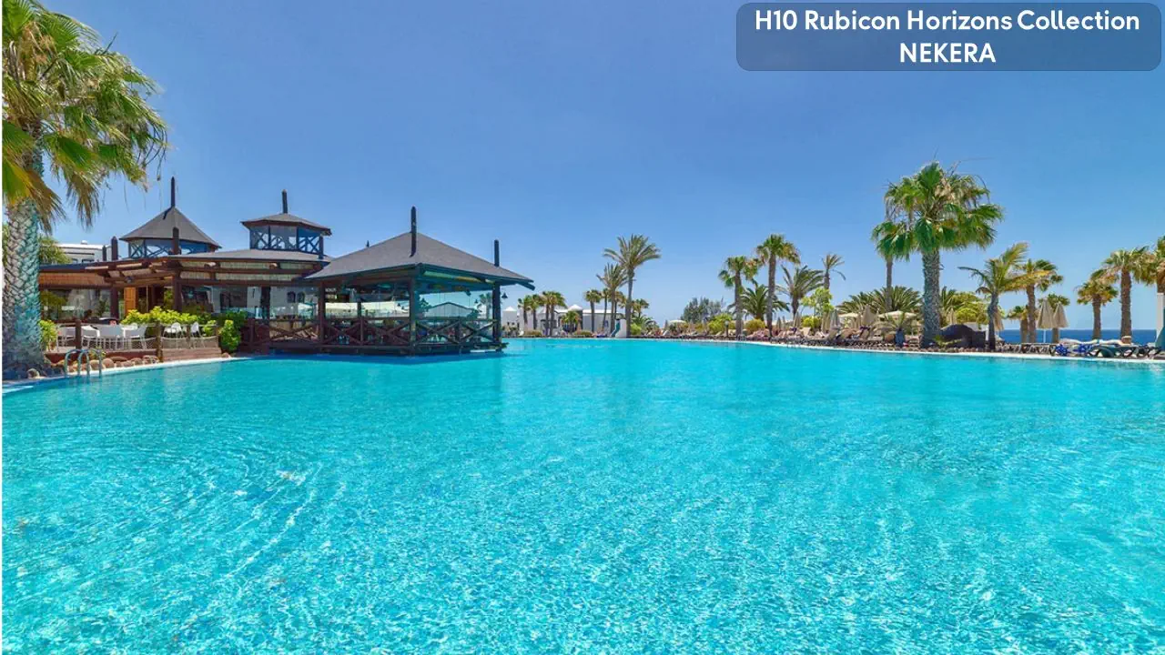 Hotel H10 Rubicon Horizons Collection to pięciogwiazdkowy hotel położony przy samym morzu w Playa Blanca na południu hiszpańskiej wyspy Lanzarote, z widokiem na wyspę Lobos i Fuerteventurę. Obiekt oferuje bogatą ofertę gastronomiczną, wiele basenów, strefę wellness z Despacio Thalasso Centre oraz programy rozrywkowe i rekreacyjne dla całej rodziny, w tym klub Daisy z atrakcjami dla dzieci. Goście mogą skorzystać z usług Privilege z dodatkowymi udogodnieniami i ekskluzywnymi przestrzeniami oraz różnorodnych restauracji i barów. Hotel wyróżnia się nowoczesnym designem inspirowanym lokalną wyspą oraz szerokim wyborem pokojów z balkonami lub tarasami.