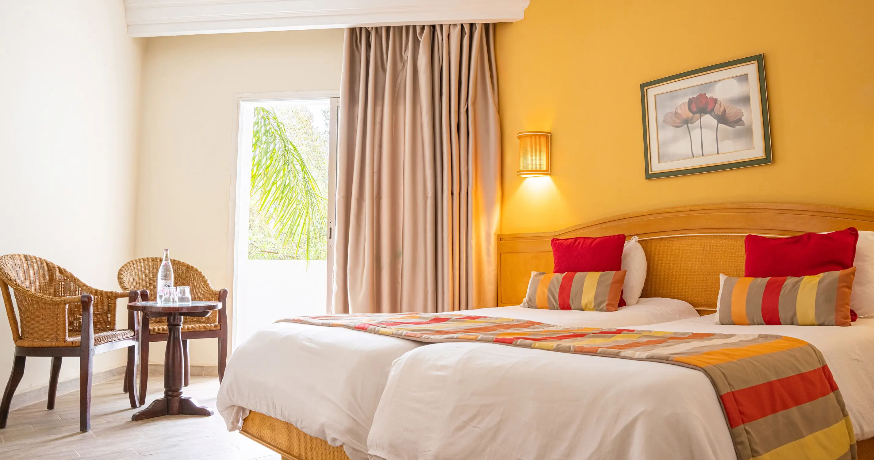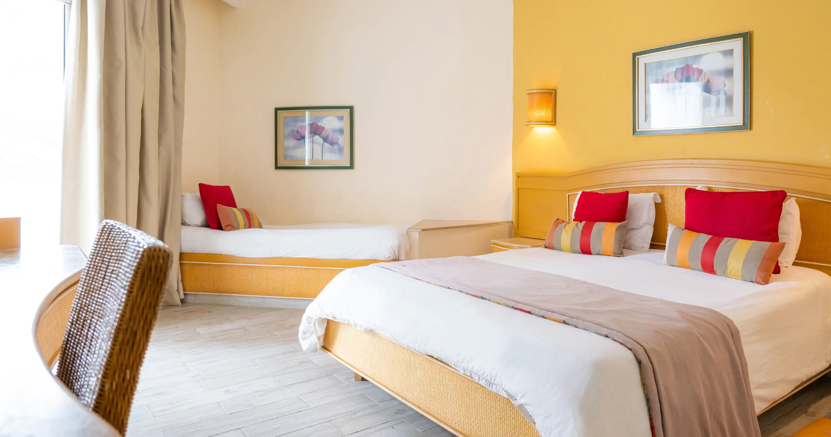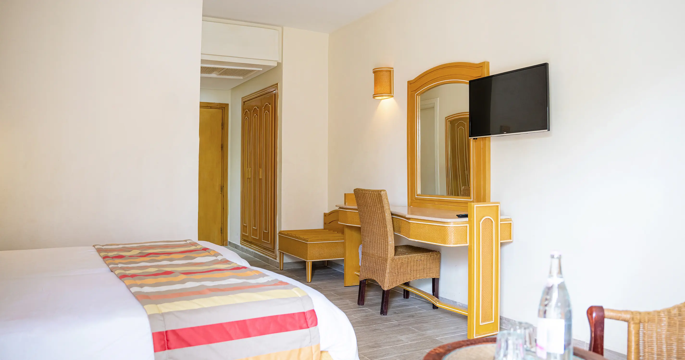 Pokój Standard ok. 30 m² - Klimatyzacja (15.06 - 15.09) - Łazienka z prysznicem lub wann, suszarka do włosów, toaleta - Telefon, TV-Sat - Minilodówka - bezpłatna (uzupełniona wodą codziennie) - Balkon - Łóżeczka dla niemowląt (na zapytanie) Pokój Connecting: - Wyposażenie jak w pokoju Standard - 2 pomieszczenie