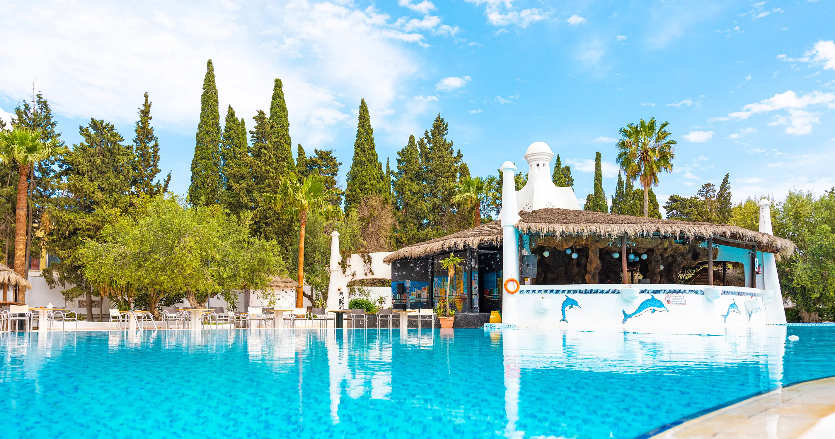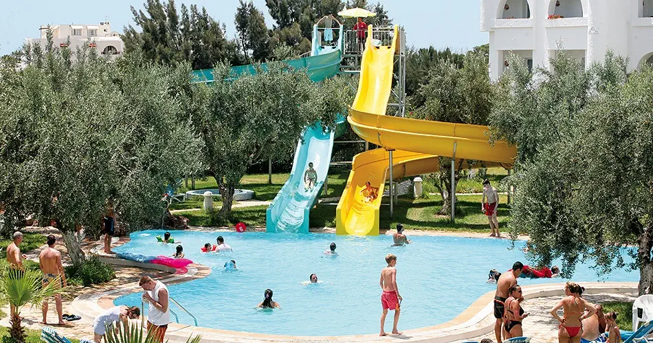 - Recepcja - 3 restauracje, w tym 2 a’la carte i 1 na plaży - 4 bary - Basen zewnętrzny, brodzik - Zjeżdżalnie - Dyskoteka - Sklepy z pamiątkami - Centrum SPA (płatne) - Sala konferencyjna - Sklepy - Kantor - Oficjalna kategoria 4*