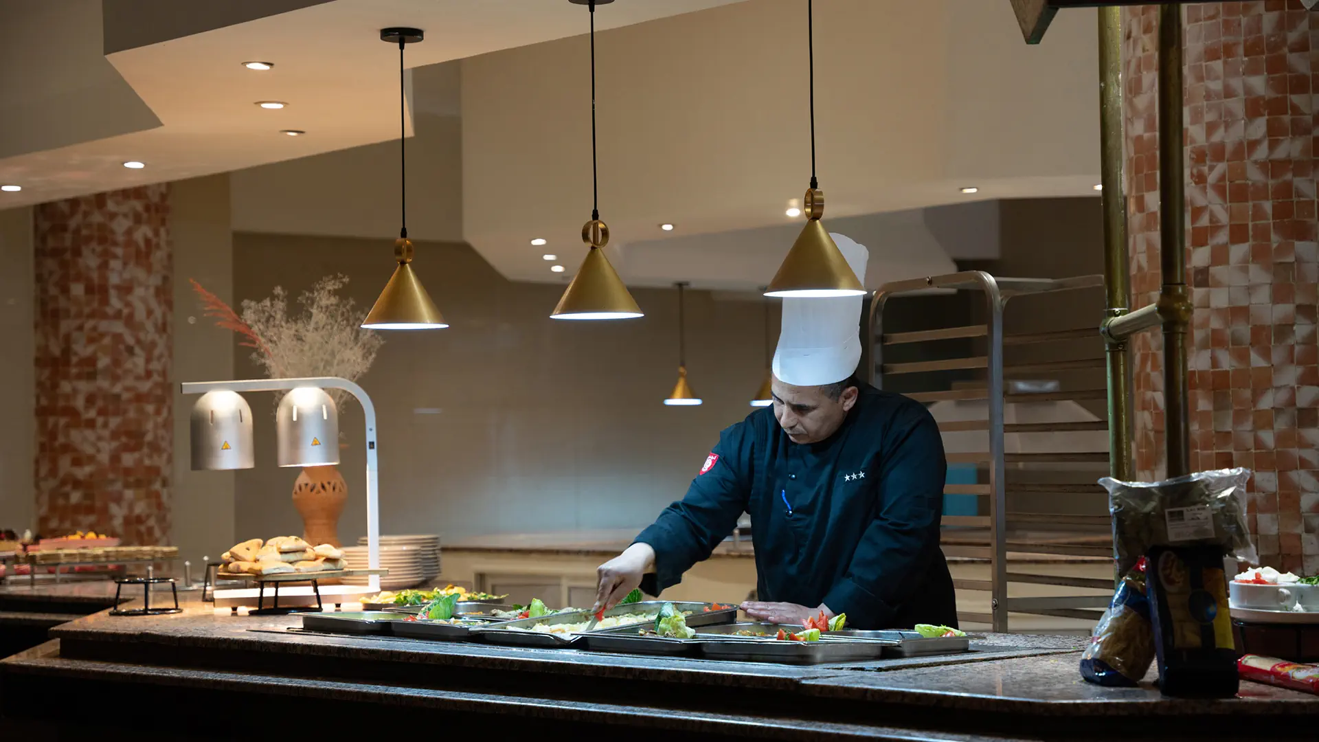 All inclusive: - Śniadanie, obiad i kolacja w formie bufetu - Przekąski w określonych godzinach w ciągu dnia - Nocne przekąski + napoje bezalkoholowe i alkohole lokalnej produkcji od 23:00 do 07:00 - Napoje bezalkoholowe i alkohole lokalnej produkcji serwowane w wybranych barach hotelowych w godzinach ich otwarcia - Jedna kolacja w restauracji à la carte (bezpłatnie raz na pobyt po dokonaniu wcześniejszej rezerwacji) - Alkohole importowane są dodatkowo płatne
