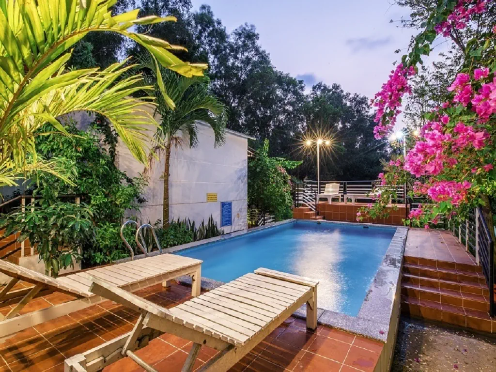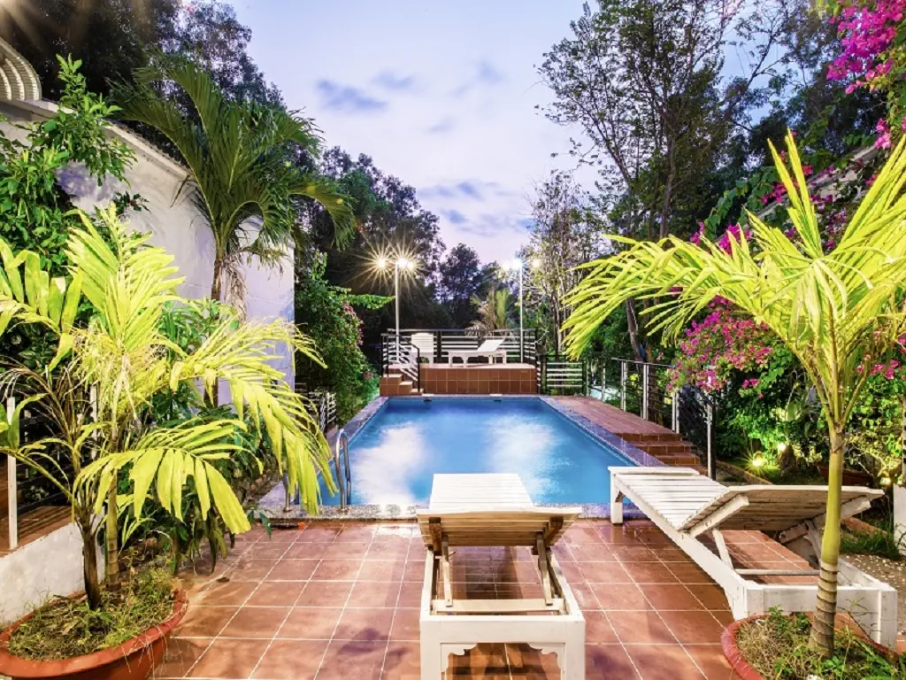 Dla max. 5 osób, Kanały telewizji: Angielski, prysznic, Powierzchnia pokoju: ok. 32 - 35 m2, Rodzaj podłogi: płytki, Sprzątanie codziennie, 1 sypialnia, Maksymalna liczba osób dorosłych: 4, Maksymalna liczba dzieci: 3, Widok na ogród, Liczba łazienek: 1, Liczba toalet: 1, Zestaw do parzenia kawy i herbaty, Klimatyzacja: Klimatyzacja indywidualna