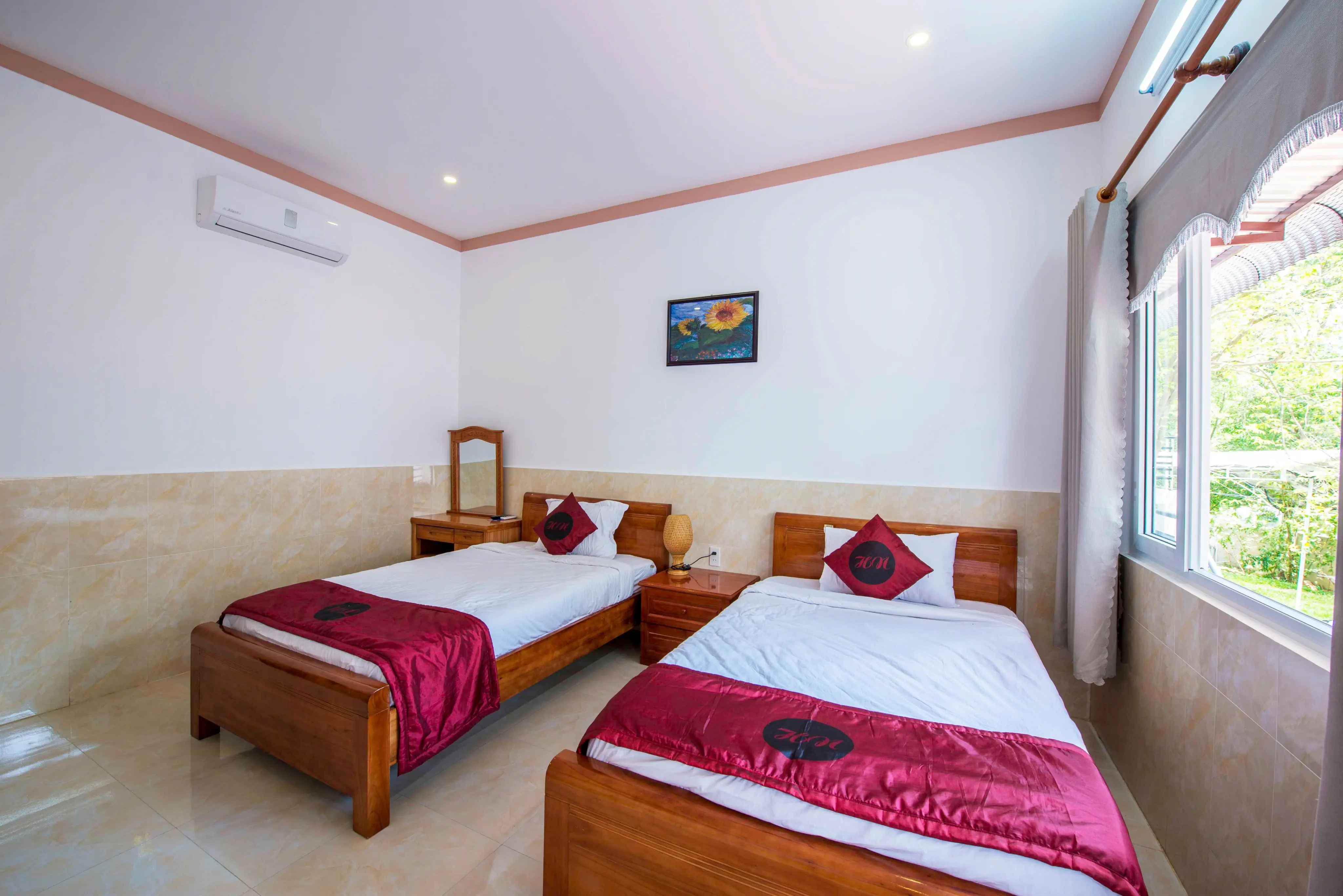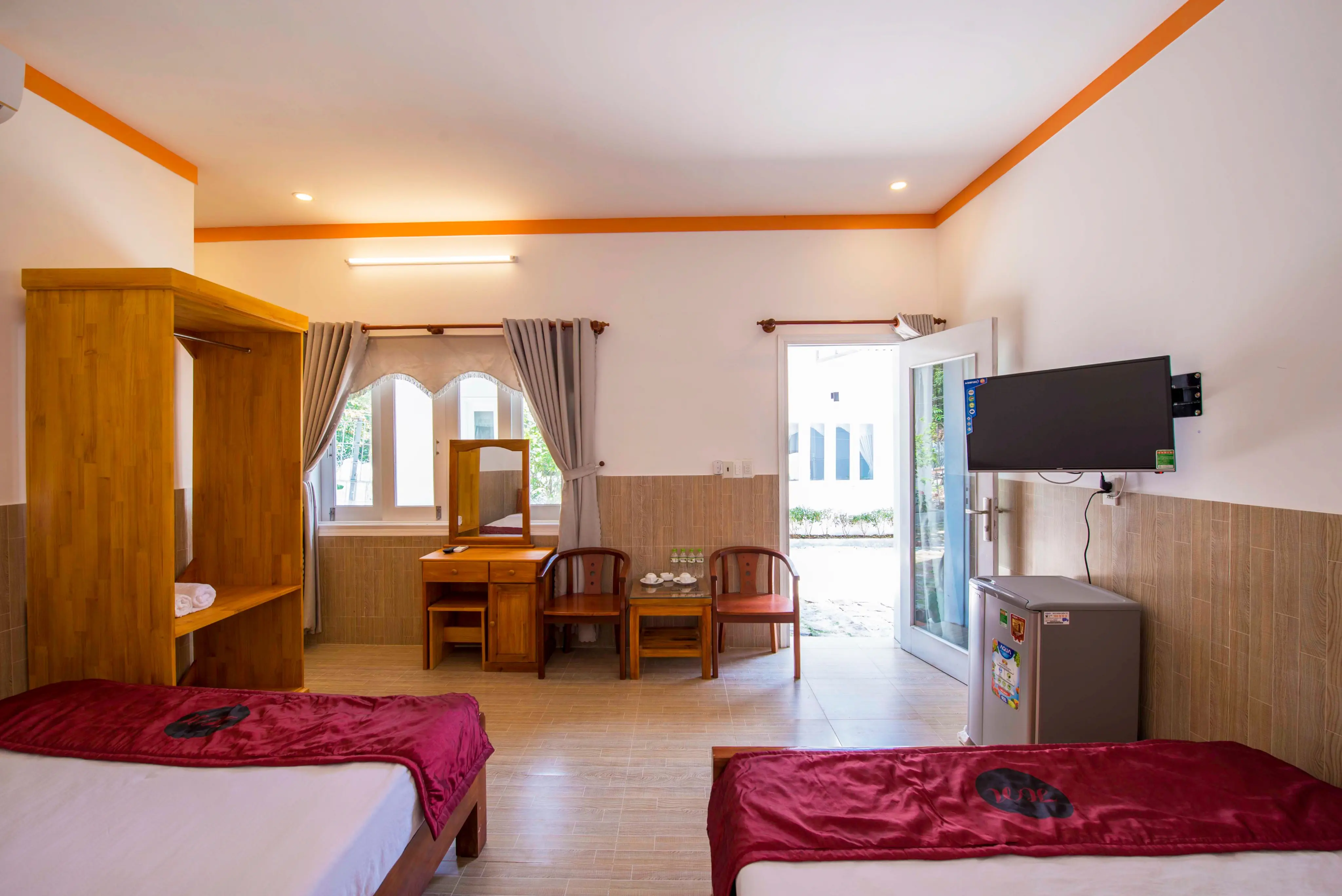 Dla max. 4 osób, Kanały telewizji: Angielski, prysznic, Powierzchnia pokoju: ok. 25 - 27 m2, Dostawka: łóżko standardowe, Rodzaj podłogi: płytki, Sprzątanie codziennie, 1 sypialnia, Maksymalna liczba osób dorosłych: 3, Maksymalna liczba dzieci: 2, Widok na ogród, Liczba łazienek: 1, Liczba toalet: 1, Zestaw do parzenia kawy i herbaty, Klimatyzacja: Klimatyzacja indywidualna