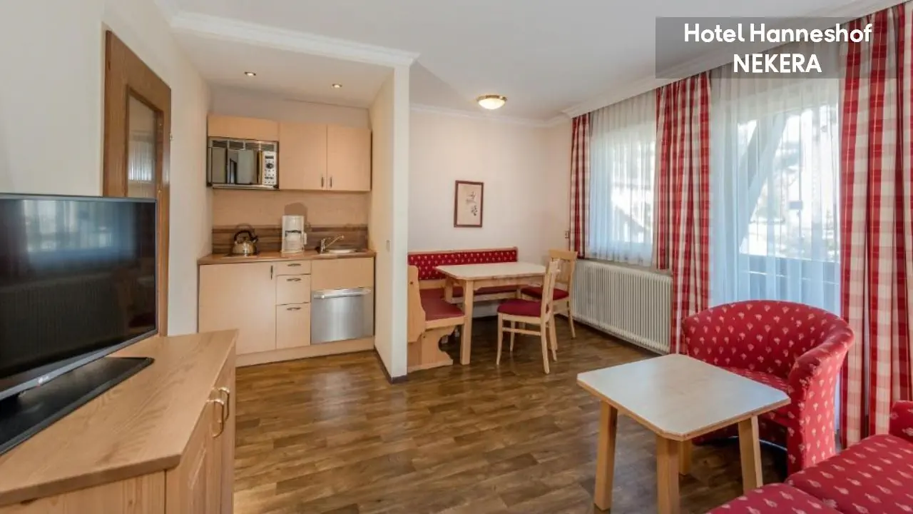 pokoje dwuosobowe (ok. 22 m2): prysznic, WC, suszarka, telefon, TV, sejf, WiFI, balkon. Pokoje czteroosobowe (ok. 25 m2): wyposażone jak pokoje dwuosobowe (dla 2 os. dorosłych i 2 dzieci). Pokoje rodzinne (ok. 35 m2): wyposażone jak pokoje dwuosobowe.
