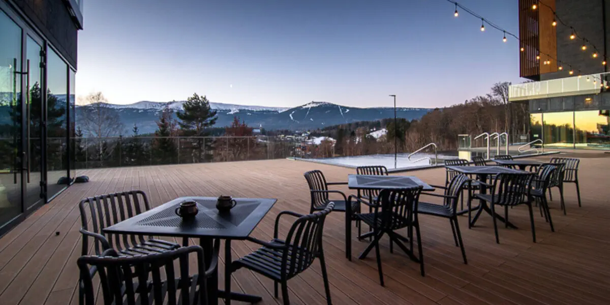 - Codzienne śniadanie w formie bufetu - Codzienna obiadokolacja w Restauracji The View - Nielimitowany wstęp do strefy wellness z basenami: wewnętrznym i zewnętrznym (całoroczny, niepodgrzewany dla osób dorosłych), saunami, jacuzzi oraz przepięknym widokiem na panoramę Karkonoszy (zgodnie z dostępnością) - Nielimitowany wstęp do strefy fitness ze specjalistycznym sprzętem do treningu siłowego i kardio (zgodnie z dostępnością) - Nielimitowany wstęp do Kids Clubu dla dzieci (w godzinach otwarcia) - Darmowy wstęp do sąsiedniego Dinoparku w Szklarskiej Porębie dla dzieci do 12 lat (czynny sezonowo od stycznia do października) - Szlafroki są dostępne w pokojach z dodatkową sypialnią dla osób od 13 r.ż. - Internet Wi-Fi - Podatek VAT