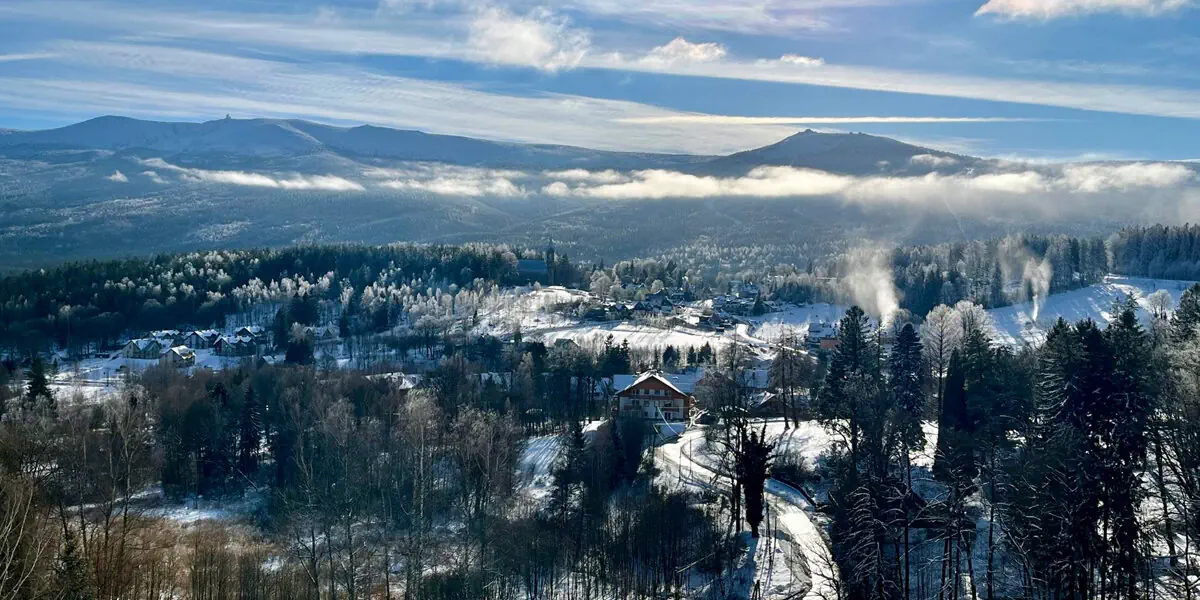 Nowoczesny resort mieści się na widokowym wzniesieniu ponad Doliną Szczęścia w zacisznej części Szklarskiej Poręby, blisko Parku Ducha Gór oraz Dinoparku i punktu widokowego Złoty Widok.