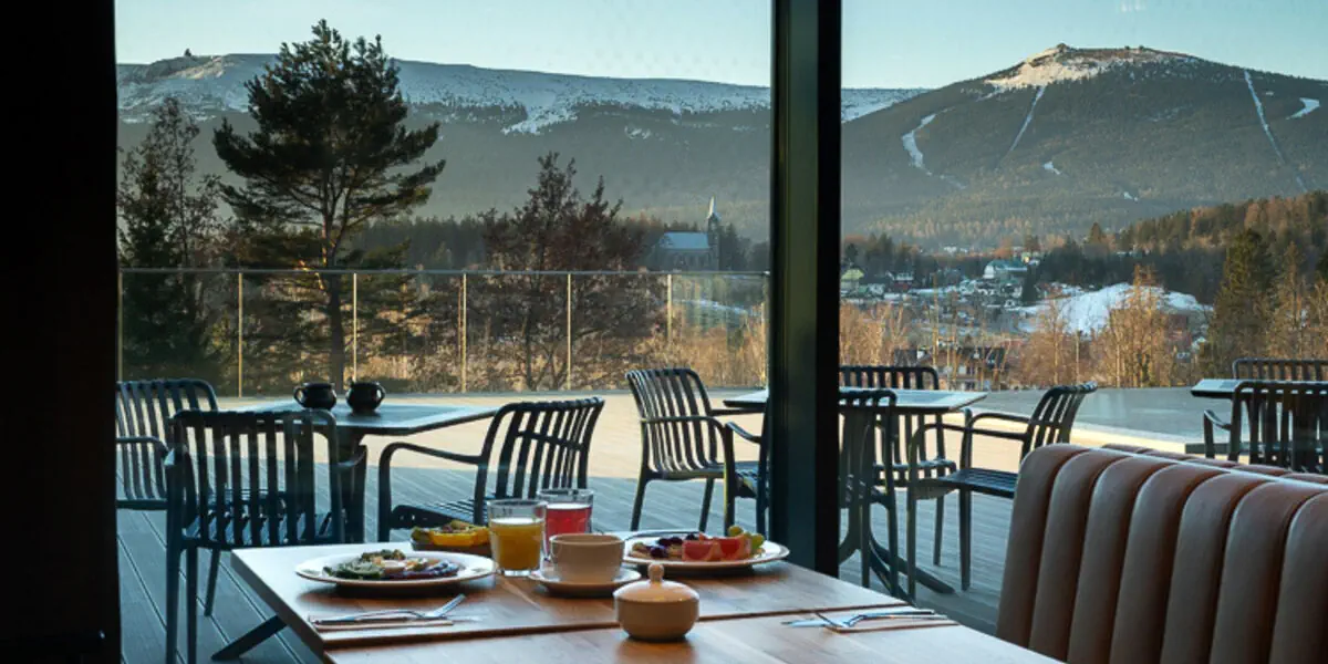 - Codzienne śniadanie w formie bufetu - Nielimitowany wstęp do strefy wellness z basenami: wewnętrznym i zewnętrznym (całoroczny, niepodgrzewany dla osób dorosłych), saunami, jacuzzi oraz przepięknym widokiem na panoramę Karkonoszy (zgodnie z dostępnością) - Nielimitowany wstęp do strefy fitness ze specjalistycznym sprzętem do treningu siłowego i kardio (zgodnie z dostępnością) - Nielimitowany wstęp do Kids Clubu dla dzieci (w godzinach otwarcia) - Darmowy wstęp do sąsiedniego Dinoparku w Szklarskiej Porębie dla dzieci do 12 lat (czynny sezonowo od stycznia do października) - Szlafroki są dostępne w pokojach z dodatkową sypialnią dla osób od 13 r.ż. - Internet Wi-Fi - Podatek VAT