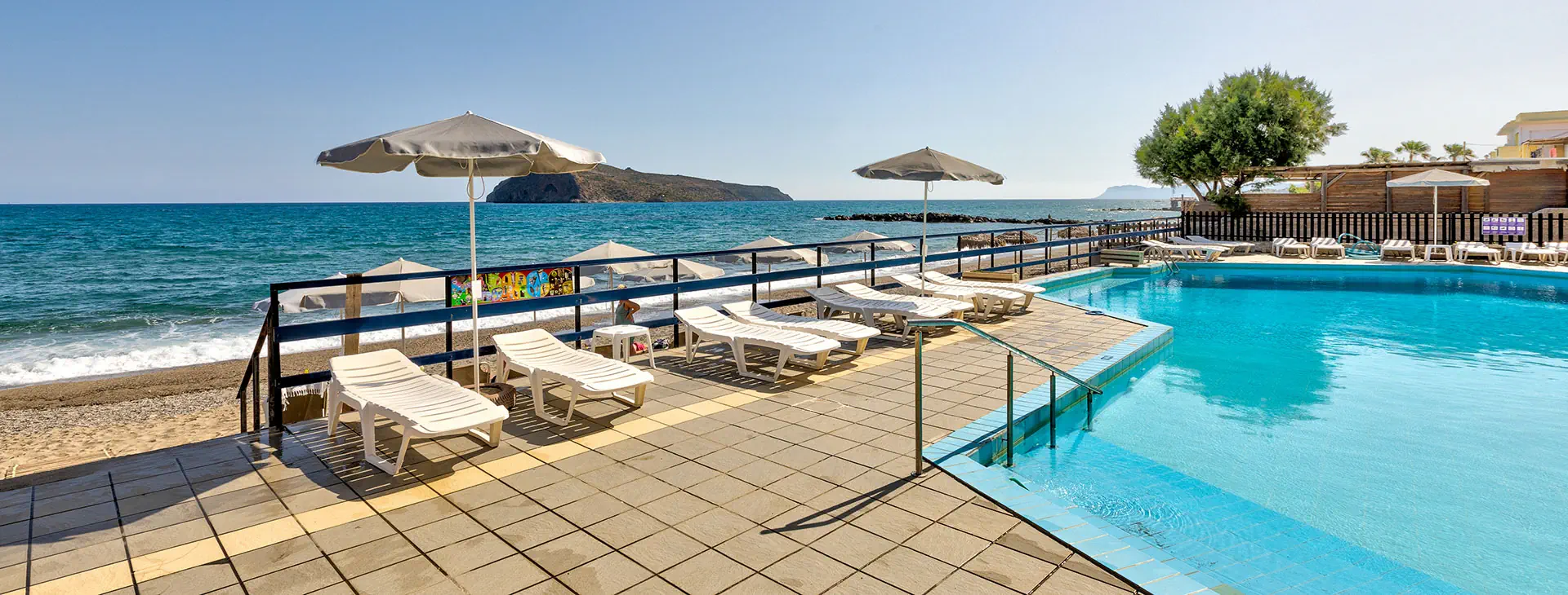 Położenie: Hotel położony w Agia Marina, niecałe 10 km od Chanii. W okolicy znajduje się wiele tawern, sklepów, kawiarni i innych atrakcji. Ok. 500 m od hotelu, rozpoczyna się miejscowość Platanias, największy kurort wakacyjny na wybrzeżu północno-zachodnim. W odległości ok. 50 m od hotelu przystanek autobusowy - dobre połączenie z Chanią. UWAGA! Cena nie obejmuje lokalnego podatku turystycznego w wysokości 1,50 EUR/pokój/dzień. Podatek jest obligatoryjny i płatny bezpośrednio w recepcji, przed zakwaterowaniem Klientów w hotelu. Plaża: Obiekt zlokalizowany tuż przy piaszczystej plaży (ciemny, gruby piasek), z pięknym widokiem na pobliską wyspę Thodorou. Parasole i leżaki na plaży - dodatkowo płatne (ok. 5 EUR/komplet: 2 leżaki + parasol). Do dyspozycji gości: Recepcja, restauracja, bar przy plaży, basen ze słodką wodą, brodzik dla dzieci, taras słoneczny przy basenie z bezpłatnymi leżakami i parasolami. Ręczniki kapielowe dostępne za kaucją 2 EUR. Ponadto bilard (płatny 2 EUR/gra). Na terenie hotelu także niewielki plac zabaw dla dzieci. Hotel akceptuje małe zwierzęta (np. psy) - po uprzednim potwierdzeniu. Pokoje: Schludne, funkcjonalnie urządzone pokoje 2-osobowe (możliość max. 1 dostawki w postaci łóżka rozkładanego) z łazienkami. W każdym pokoju telefon, lodówka, suszarka do włosów, indywidualnie sterowana klimatyzacja (w cenie) i sejf (dodatkowo płatny ok. 10 EUR/tydzień lub 1,50 EUR/dzień). - Pokoje standard - (droższe) - położone na pierwszym piętrze, mają balkon i boczny widok na morze. - Pokoje standard na parterze- (tańsze) - znajdują się na parterze, mają mini-taras, bez widoku. Na życzenie bezpłatne łóżeczko dla dziecka do 2 lat - należy zaznaczyć w rezerwacji. Wyżywienie: Śniadania w formie bufetu (przed i po sezonie mogą być serwowane do stolika). Możliwość dopłaty do obiadokolacji. Napoje dodatkowo płatne wg cennika w restauracji. Internet: Internet Wi-Fi - bezpłatny w hallu hotelowym. Kategoria lokalna: B Strona www: