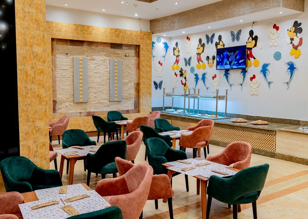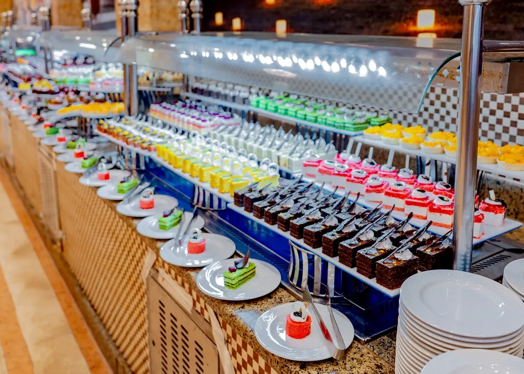 Śniadanie (07:00 - 10:00) - Novel - Main Restaurant, stół szwedzki, Obiad (13:00 - 15:00) - Novel - Main Restaurant, stół szwedzki, Przekąski (14:30 - 17:00) - Sun Set Restaurant , określone menu, Podwieczorek (16:30 - 17:30) - Bistro, określone menu, Kolacja (18:30 - 21:00) - Novel - Main Restaurant, stół szwedzki, Solmare Restaurant (19:00 - 22:00) (19:00 - 22:00), bez limitu, Kuchnia: owoce morza , Wymagana rezerwacja: Tak ¹⁾, Basilico Restaurant (18:30 - 20:00) (18:30 - 20:00), bez limitu, Kuchnia: Włoska, Wymagana rezerwacja: Tak ¹⁾, Wasabi Restaurant (18:30 - 20:00) (18:30 - 20:00), bez limitu, Kuchnia: Chińska, Wymagana rezerwacja: Tak ¹⁾, Mahraja Restaurant (18:30 - 20:00) (18:30 - 20:00), bez limitu, Kuchnia: indyjska, Wymagana rezerwacja: Tak ¹⁾, Lobby Bar (10:00 - 00:00), Napoje: alkohole lokalne (10:00 - 00:00), napoje bezalkoholowe, alkohole lokalne, wybrane alkohole importowane ¹⁾, lody, pakiety urodzinowe (na życzenie), room service ¹⁾ ¹⁾ - dodatkowo płatne