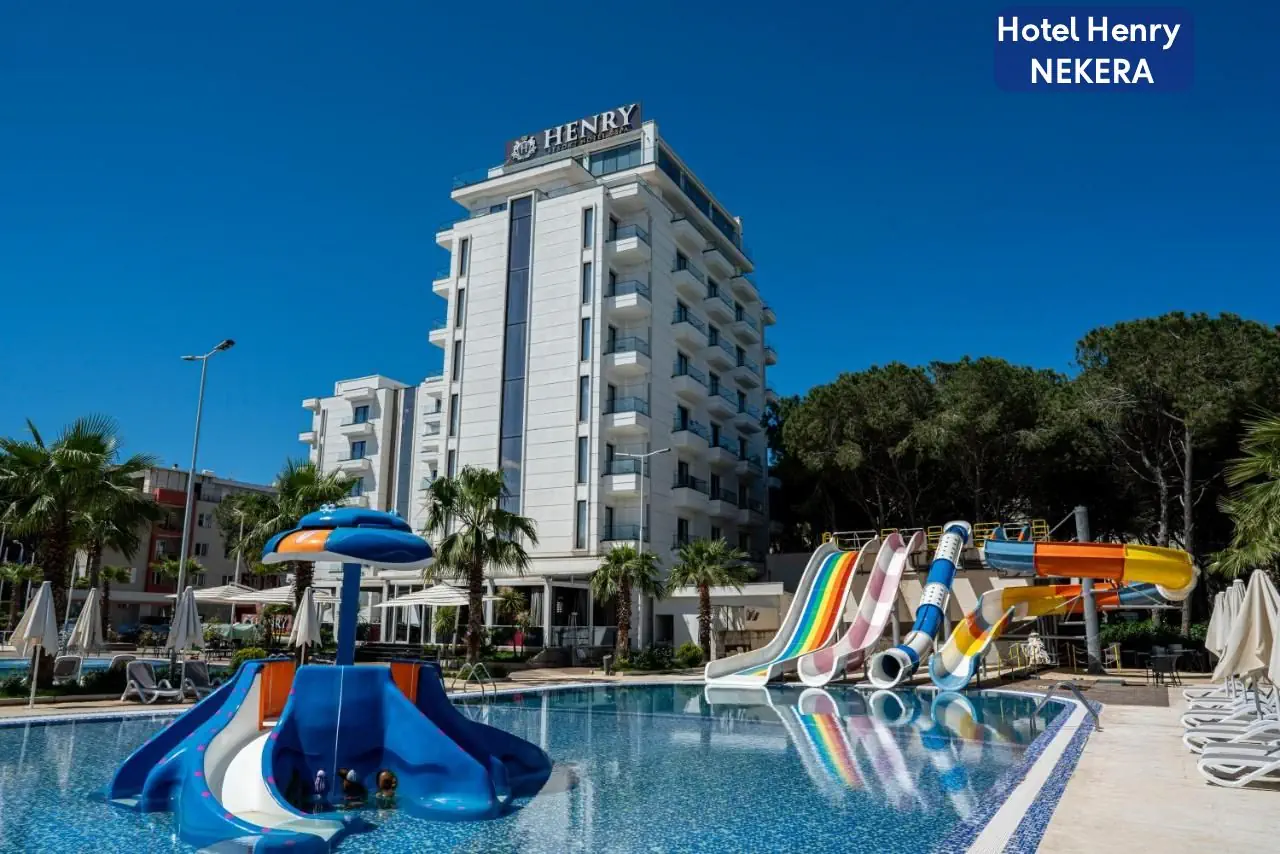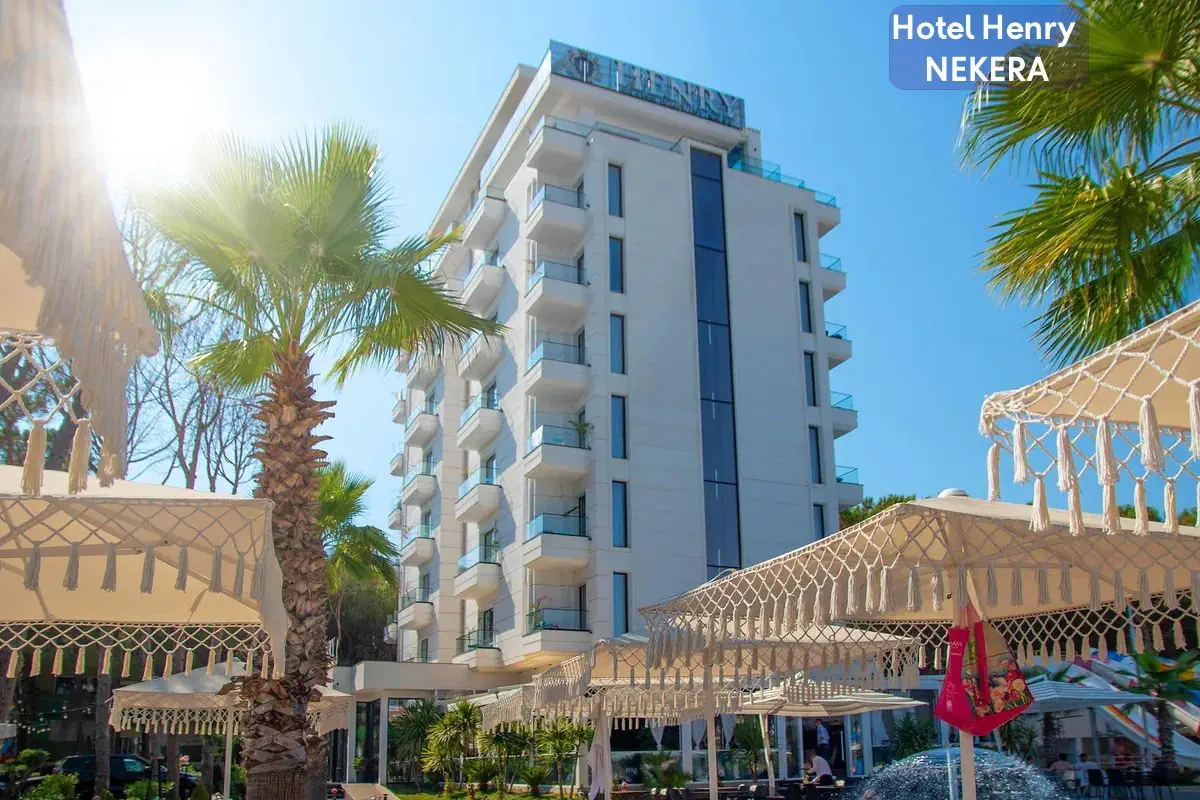 Hotel Henry w Golem, w Albanii, to luksusowy, pięciogwiazdkowy obiekt położony zaledwie 200 metrów od piaszczystej plaży Mali i Robit. Oferuje nowoczesne pokoje i apartamenty, z których wiele posiada balkon z widokiem na morze. Goście mogą korzystać z odkrytego basenu, centrum fitness oraz eleganckiego SPA oferującego relaksacyjne zabiegi. Restauracja serwuje dania kuchni międzynarodowej i lokalnej, a bar zaprasza na różnorodne napoje. Hotel jest idealnym miejscem dla osób szukających komfortu, z doskonałą obsługą i bliskością morza.