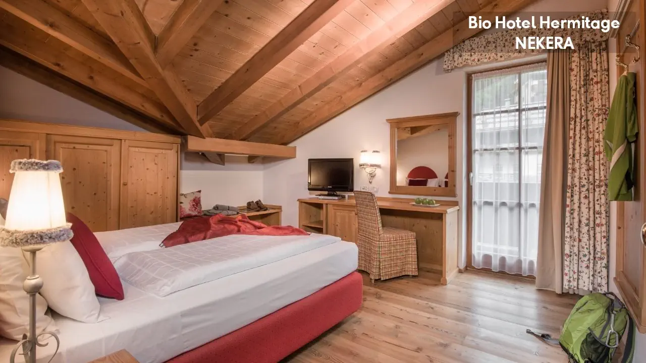 Pokój dwuosobowy Classic: ok. 18 m2, mogący zakwaterować do dwóch osób, jedno łóżko podwójne, TV, Wi-Fi, biurko, sejf, prywatna łazienka (wanna lub prysznic, toaleta, umywalka, suszarka do włosów, zestaw kosmetyków), pokój bez balkonu. Pokój dwuosobowy Genziana: ok. 25 m2, mogący zakwaterować do trzech osób, jedno łóżko podwójne i sofa dla trzeciej osoby, balkon z widokiem na góry, poza tym wyposażony jak pokój dwuosobowy Classic. Pokój Stella Alpina: ok. 30 m2, mogący zakwaterować do czterech osób, jedno łóżko podwójne i łóżko piętrowe, pokój z balkonem; poza tym wyposażony jak pokój dwuosobowy Classic.