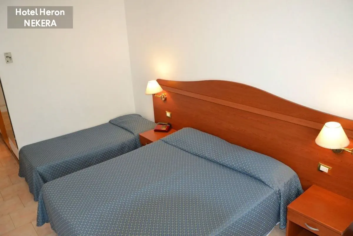 pokoje dwuosobowe standard (ok. 13 m2): wanna lub prysznic, WC, suszarka, TV, WiFi, klimatyzacja, sejf. Pokoje dwuosobowe z balkonem (ok. 13 m2): wyposażone jak pokoje dwuosobowe standard, balkon, widok na morze. Pokoje trzyosobowe z balkonem (ok. 14 m2): wyposażone jak pokoje dwuosobowe standard, balkon, widok na morze. Pokoje jednoosobowe (ok. 10 m2): wyposażone jak pokoje dwuosobowe standard, balkon. Pokoje dwuosobowe w budynku bocznym (ok. 15 m2): wyposażone jak pokoje dwuosobowe standard, balkon. Pokoje dwuosobowe z bocznym widokiem na morze (ok. 14 m2): wyposażone jak pokoje dwuosobowe standard, balkon, boczny widok na morze.