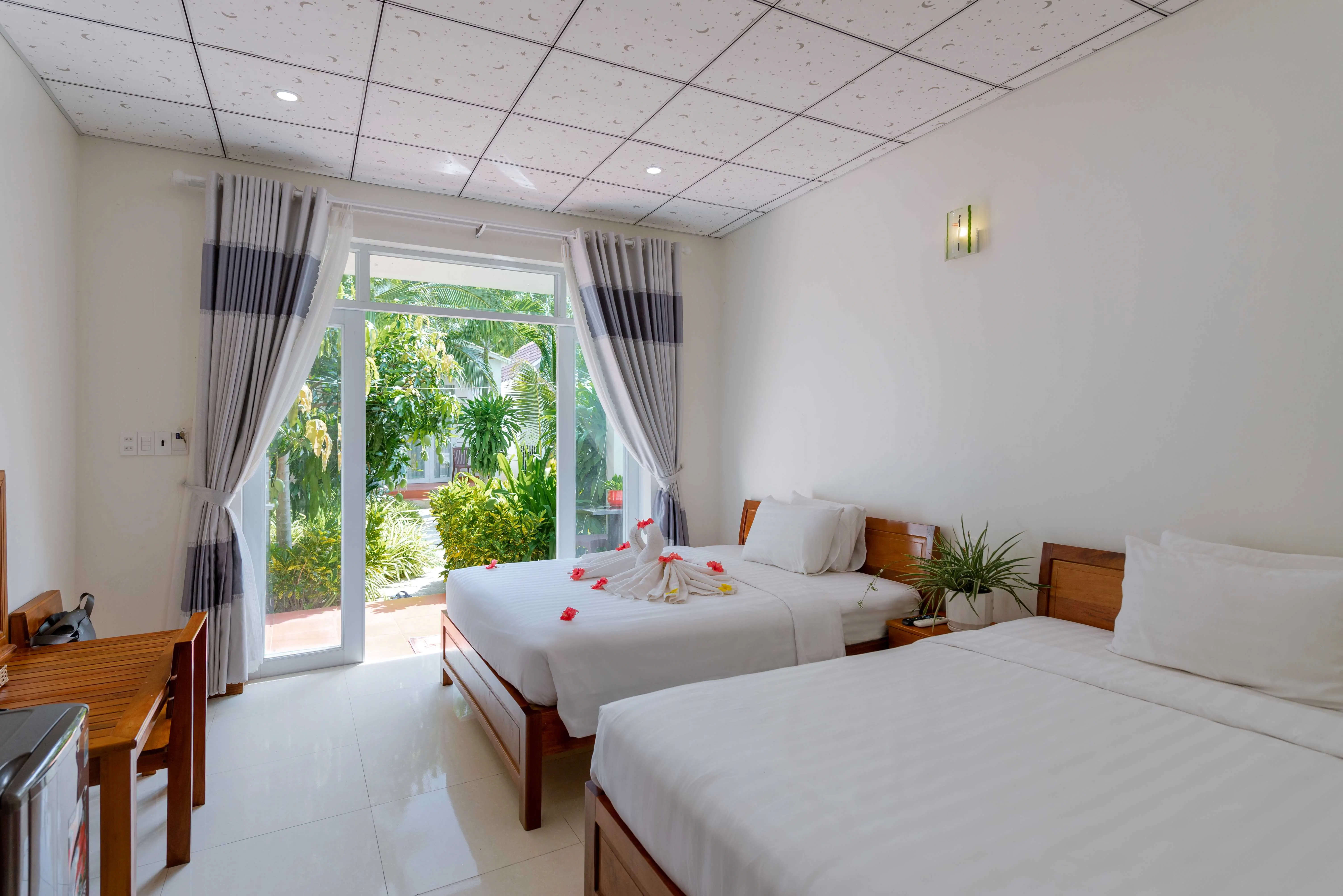 Dla max. 4 osób, Przestrzeń zewnętrzna: Taras, Kanały telewizji: Angielski, prysznic, Powierzchnia pokoju: ok. 35 - 38 m2, Dostawka: łóżko rozkładane, Rodzaj podłogi: płytki, Sprzątanie codziennie, 1 sypialnia, Maksymalna liczba osób dorosłych: 3, Maksymalna liczba dzieci: 3, Widok na ogród i basen,Widok na ogród,Widok na basen, Liczba łazienek: 1, Liczba toalet: 1, Zestaw do parzenia kawy i herbaty, Klimatyzacja: Klimatyzacja indywidualna
