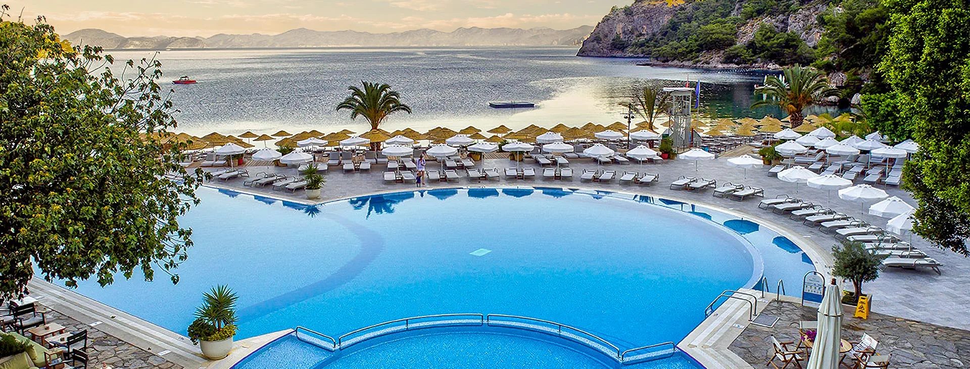 Położenie: Ten nieziemsko położony, luksusowy hotel otoczony jest bujnym lasem piniowym, w cichym i urokliwym miejscu, skąd rozpościera się niesamowity widok na Zatokę Kalemya. Do centrum Fethiye, z szerokim wyborem sklepów, barów i restauracji ok. 4 km, do lotniska w Dalamanie ok. 55 km. Plaża: Hotel oferuje 3 prywatne, żwirkowe plaże z bezpłatnymi leżakami, parasolami i ręcznikami. Plaża główna z kilkoma pomostami oraz plaże w zacisznym miejscu tylko dla dorosłych (zalecane obuwie ochronne). Do dyspozycji gości: Recepcja 24 h, kantor, lobby, restauracja główna, 2 restauracje a'la carte: śródziemnomorska (tylko dla dorosłych, wymagana rezerwacja, zamknięta w niedziele, napoje dodatkowo płatne) i włoska (wymagana rezerwacja w porze kolacji, napoje dodatkowo płatne.), 8 barów, w tym bar przy basenie i bar przy plaży. Basen główny, basen dla dzieci z 4 zjeżdżalniami. Za dodatkową opłatą: butik, jubiler, fotograf, księgarnia, fryzjer, wypożyczenie samochodu, pomoc medyczna. Wyżywienie: Full Board Plus: śniadanie (07:30-10:00), późne śniadanie (10:00-12:00), lunch (12:45-14:30), obiadokolacja (19:00-21:45), przekąski w ciągu dnia (13:30-15:30), popołudniowa przerwa na herbatę (16:45-17:30) oraz nocna przekąska (00:00-04:00), hamburgery za dodatkową opłatą (00:00-04:00). Do posiłków w cenie: woda, domowe wino, piwo, wybrane napoje bezalkoholowe. Za dodatkową opłatą: pozostałe napoje alkoholowe i bezalkoholowe dostępne w barach w godzinach 10:00-04:00. Program sportowy i animacyjny: Hotel prowadzi dzienny oraz wieczorny program animacyjny. Ponadto: rzutki, tenis stołowy, 4 korty tenisowe, łucznictwo, joga, zumba, pilates, stretching, siłownia, boisko do piłki nożnej, siatkówka plażowa, gry w basenie, gimnastyka w wodzie, lekcje tańca, sporty wodne (kajaki, rowery wodne), łaźnia turecka, sauna. Za dodatkową opłatą: rejsy statkami, żeglarstwo, lekcje nurkowania, lekcje tenisa, sporty wodne, centrum SPA (zabiegi, masaże). Internet: Bezpłatny Internet Wi-Fi dostępny na terenie całego hotelu. Kategoria lokalna: ***** Strona www: