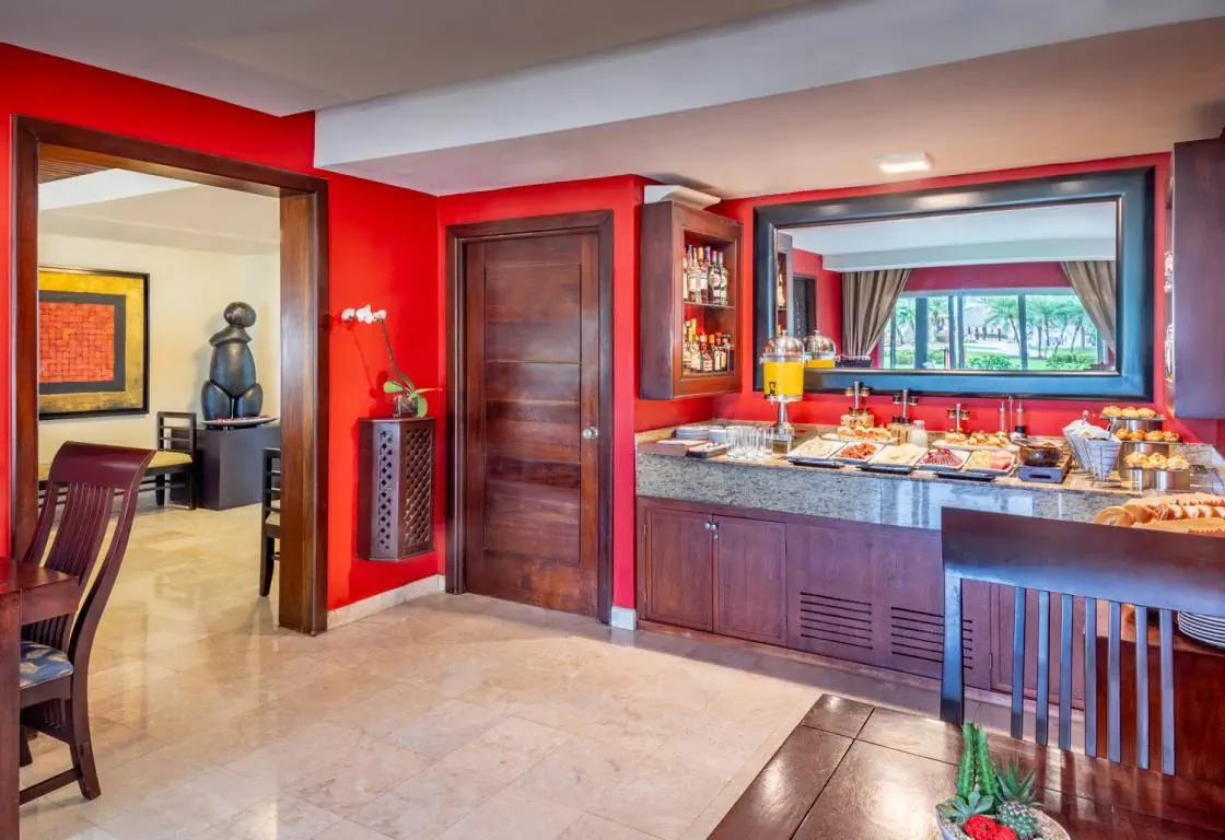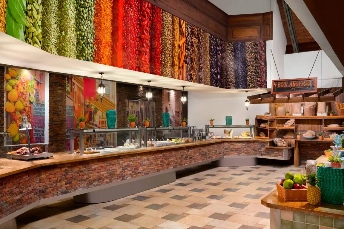 Śniadanie (06:30 - 11:00) - Spices Market, stół szwedzki, Obiad (12:30 - 16:00) - Spices Market, stół szwedzki, Przekąski (12:00 - 16:00) - The Grill, stół szwedzki, Przekąski (12:00 - 18:00) - Pizzeria, określone menu, Kolacja (18:30 - 22:00) - Spices Market, stół szwedzki, Moustache (18:00 - 22:00) (18:00 - 22:00), bez limitu, Kuchnia: Francuska, Wymagana rezerwacja: Nie, Azzurri (18:00 - 22:00) (18:00 - 22:00), bez limitu, Kuchnia: Włoska, Wymagana rezerwacja: Nie, The Grill (18:00 - 22:00) (18:00 - 22:00), bez limitu, Kuchnia: owoce morza , Wymagana rezerwacja: Nie, Ausangate (18:00 - 22:00) (18:00 - 22:00), bez limitu, Kuchnia: lokalna, Wymagana rezerwacja: Nie, On the Rocks (10:00 - 02:00), Napoje: alkohole lokalne, napoje bezalkoholowe (10:00 - 02:00), Coral Reef beach bar (10:00 - 18:00), Napoje: alkohole lokalne, napoje bezalkoholowe (10:00 - 18:00), Las Palmas Swim-Up Bar (10:00 - 19:00), Napoje: alkohole lokalne, napoje bezalkoholowe (10:00 - 19:00), One for the Road lobby bar (10:00 - 00:00), Napoje: alkohole lokalne, napoje bezalkoholowe (10:00 - 00:00), Pool Bar Premium Section (09:00 - 18:00), Napoje: alkohole lokalne, napoje bezalkoholowe (09:00 - 18:00), Premium Club Lounge (08:00 - 00:00), Napoje: alkohole lokalne, napoje bezalkoholowe (08:00 - 00:00), Tres Hermanas (10:00 - 18:00), Napoje: napoje bezalkoholowe (10:00 - 18:00), napoje bezalkoholowe, alkohole lokalne, wybrane alkohole importowane, room service ¹⁾, Minibar w pokoju ¹⁾ - dodatkowo płatne
