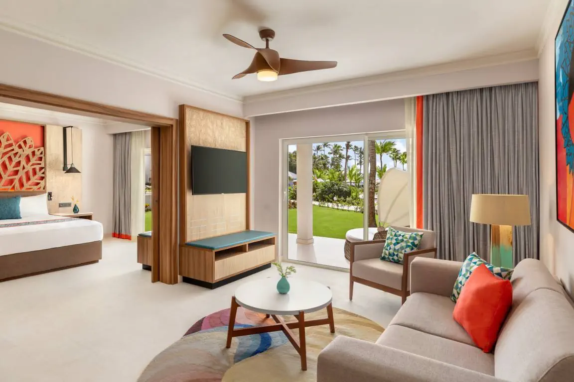Dla max. 2 osób, Przestrzeń zewnętrzna: Balkon lub taras, Kanały telewizji: Angielski, Telefon w pokoju, wanna i prysznic , Powierzchnia pokoju: ok. 76 - 77 m2, Rodzaj podłogi: płytki, Sprzątanie codziennie, Salon, część jadalniana, 1 sypialnia, Drzwi przesuwne, Maksymalna liczba osób dorosłych: 2, Maksymalna liczba dzieci: 0, Widok na ogród, Liczba łazienek: 1, Liczba toalet: 1, Klimatyzacja: Klimatyzacja indywidualna