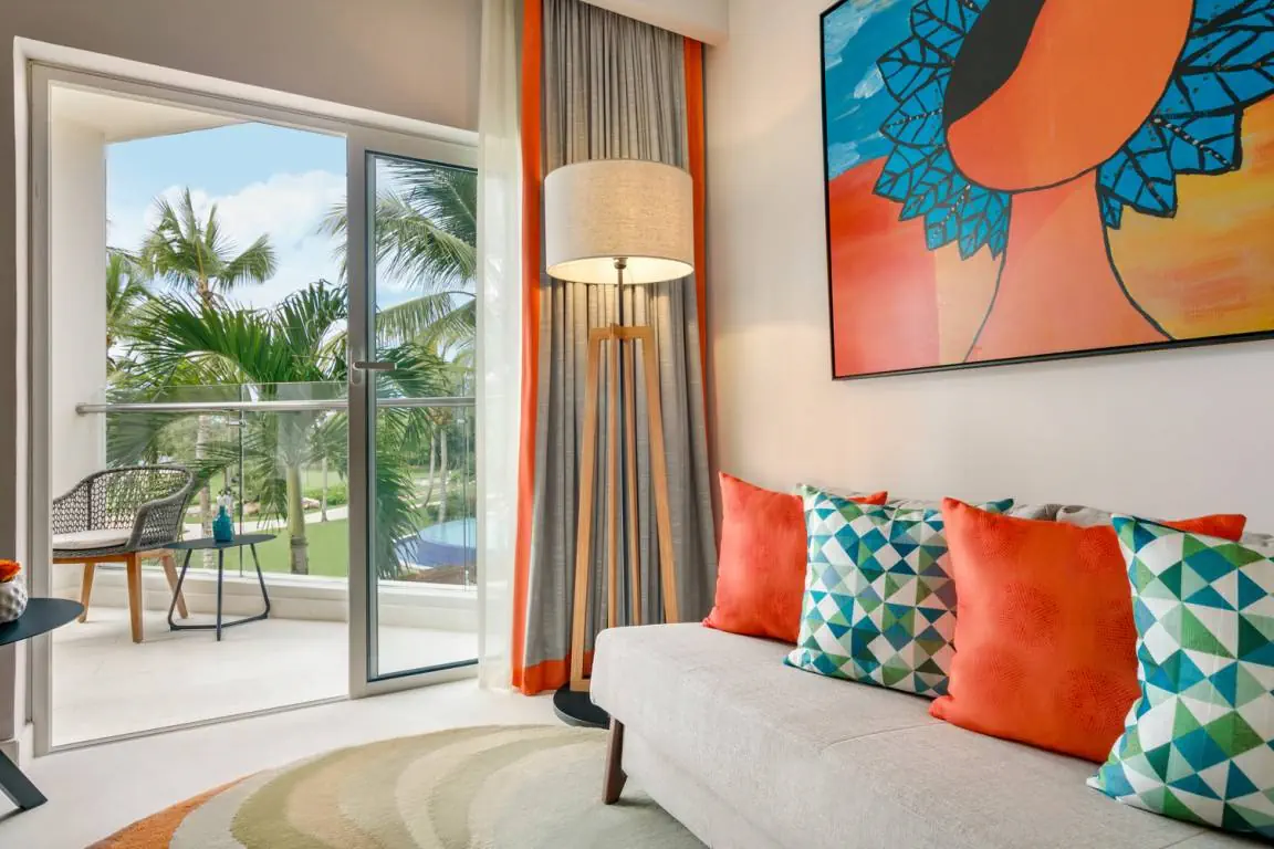 Dla max. 2 osób, Przestrzeń zewnętrzna: Balkon lub taras, Kanały telewizji: Angielski, Telefon w pokoju, wanna i prysznic , Powierzchnia pokoju: ok. 76 - 77 m2, Dostawka: sofa, Rodzaj podłogi: płytki, Sprzątanie codziennie, Salon, część jadalniana, 1 sypialnia, Drzwi przesuwne, Maksymalna liczba osób dorosłych: 2, Maksymalna liczba dzieci: 0, Widok na basen,Widok na morze, Liczba łazienek: 1, Liczba toalet: 1, Klimatyzacja: Klimatyzacja indywidualna