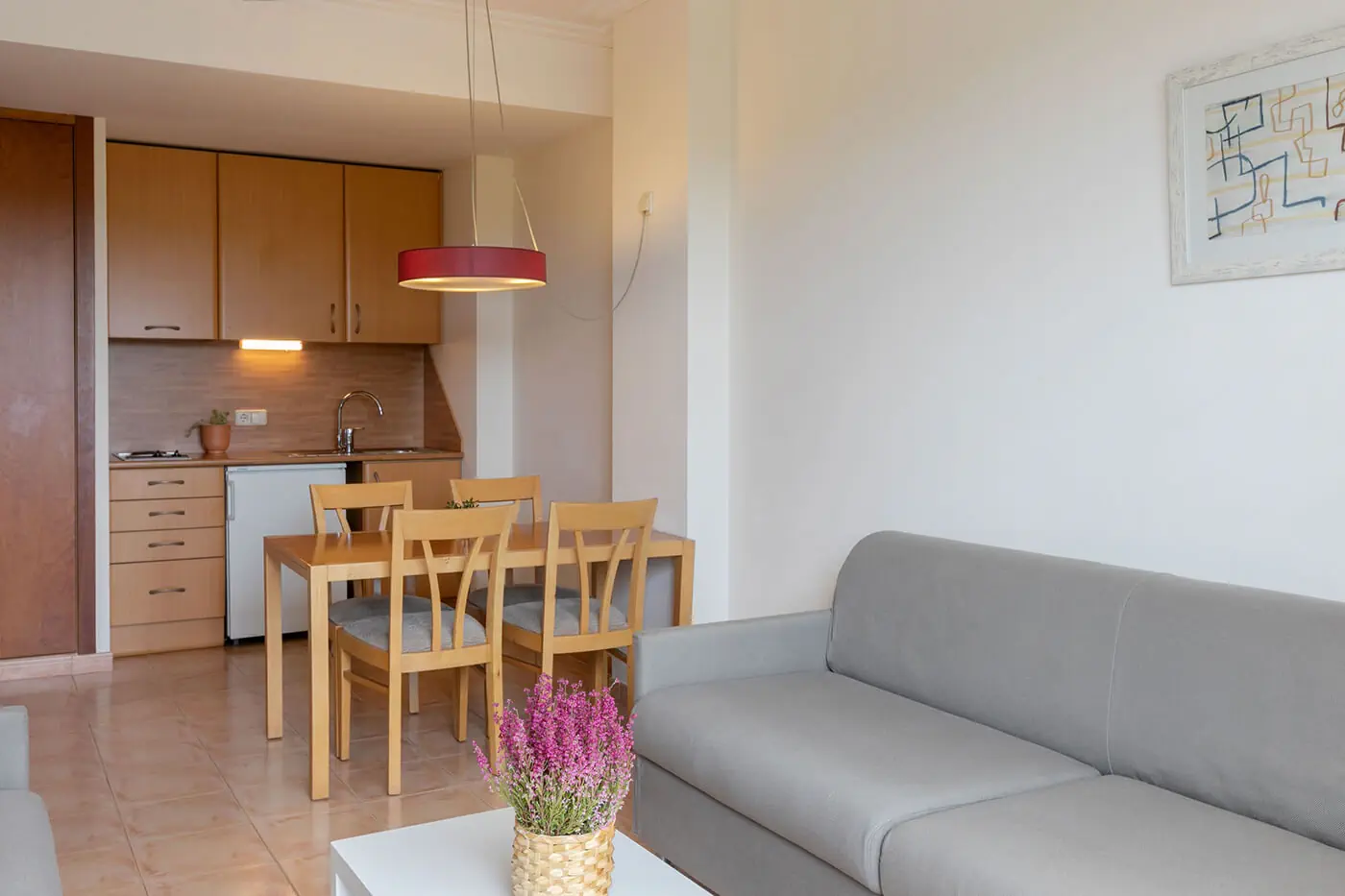 Dla max. 4 osób, Przestrzeń zewnętrzna: Balkon lub taras, Telefon w pokoju, Aneks kuchenny, wanna lub prysznic , Powierzchnia pokoju: ok. 40 m2, Dostawka: sofa, Rodzaj podłogi: płytki, Sprzątanie cykliczne, Salon, część jadalniana, 1 sypialnia, Maksymalna liczba osób dorosłych: 4, Maksymalna liczba dzieci: 2, Widok na miasto,Widok na ogród, Liczba łazienek: 1, Liczba toalet: 1, Klimatyzacja: Klimatyzacja centralna, Działa w godzinach: 24hKwiecień, Maj, Czerwiec, Lipiec, Sierpień, Wrzesień, Październik