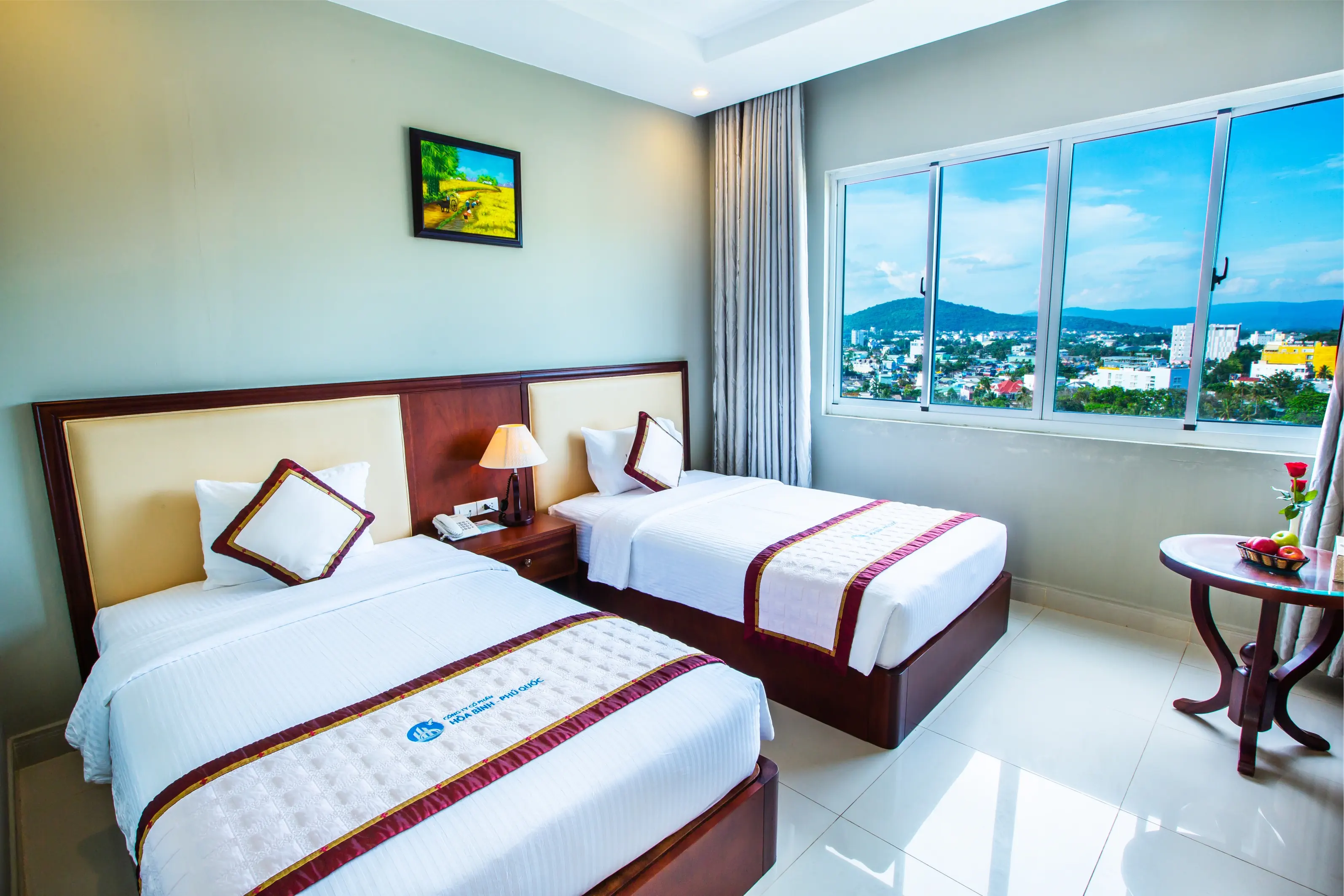 Przyjemny hotel położony niedaleko centrum wakacyjnego kurortu, Hoa Binh Phu Quoc Resort oferuje przestronne, stylowe pokoje z widokiem na miasto lub ogród, a także na morze. Krótki spacer dzieli obiekt od piaszczystej plaży i różnego rodzaju miejskich atrakcji. Ponadto, dla Gości hotel przygotował restaurację, basen i piękny ogród.
