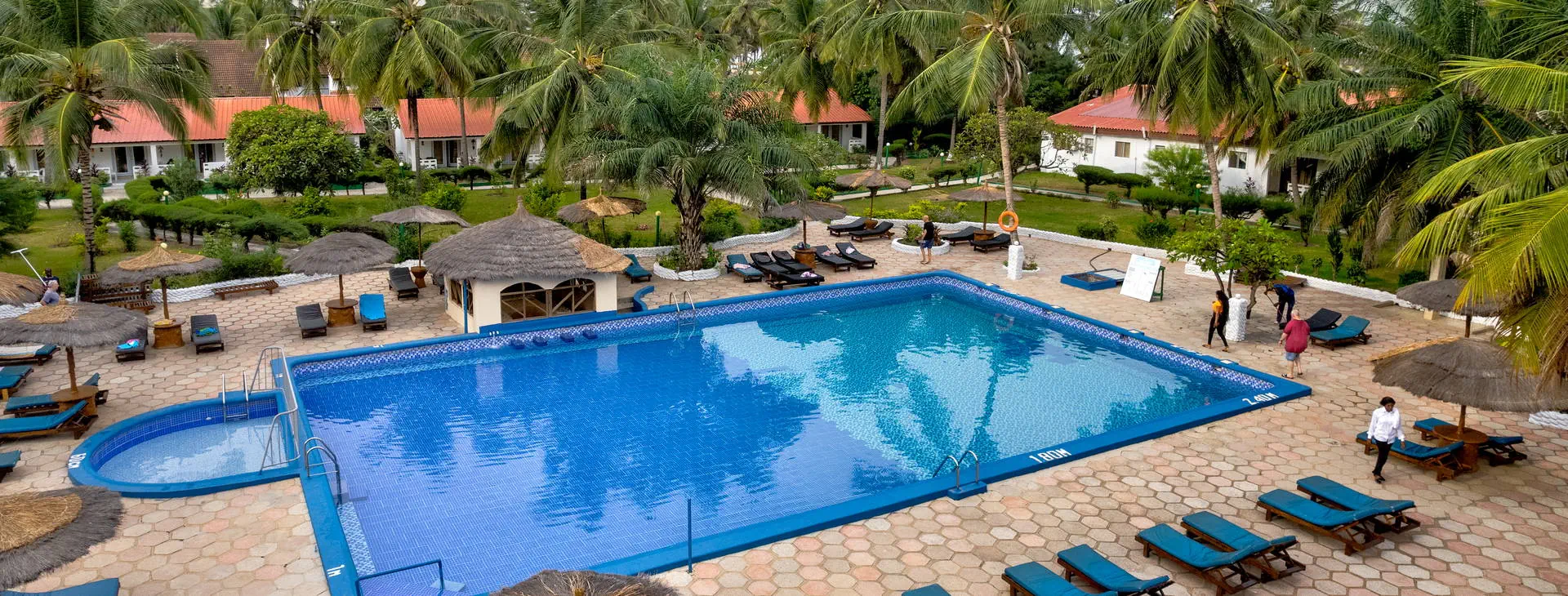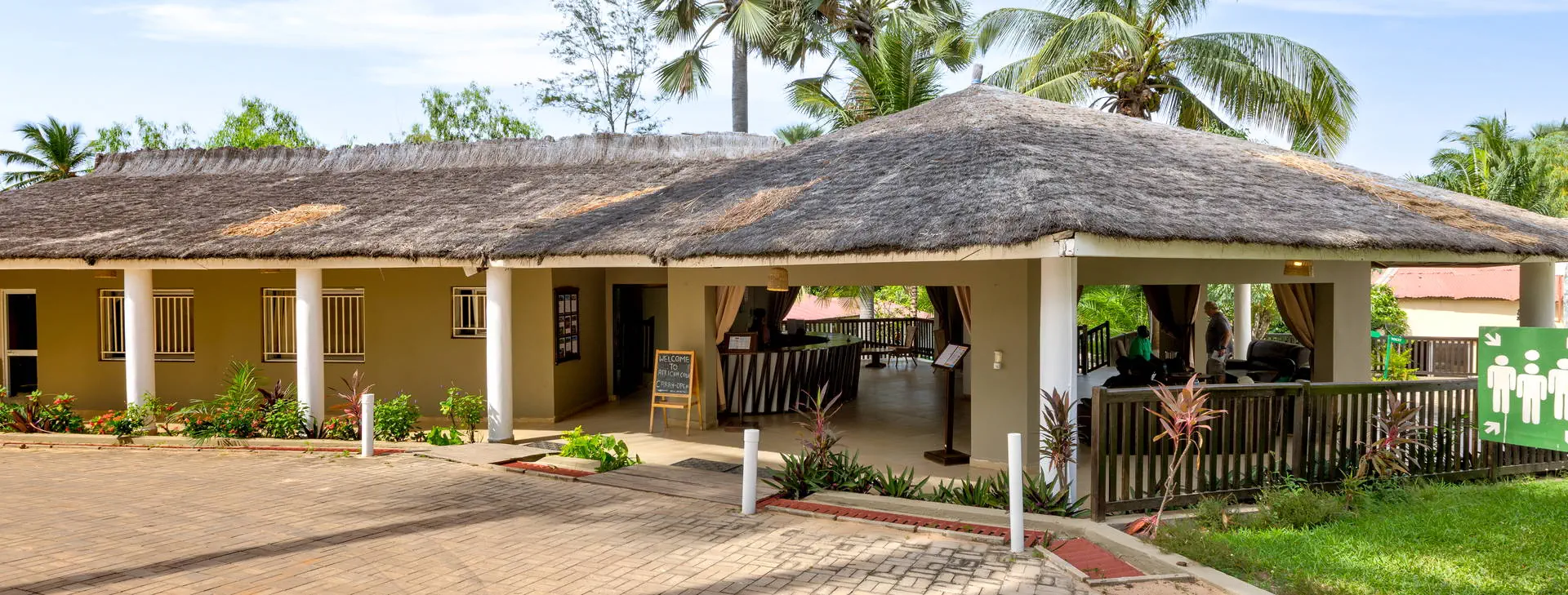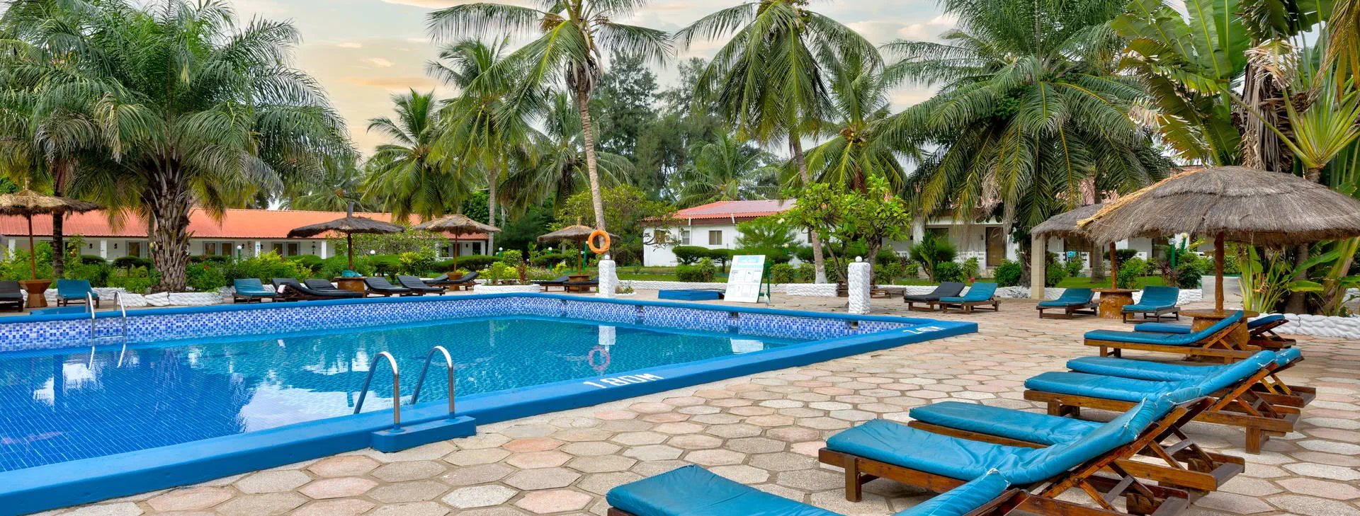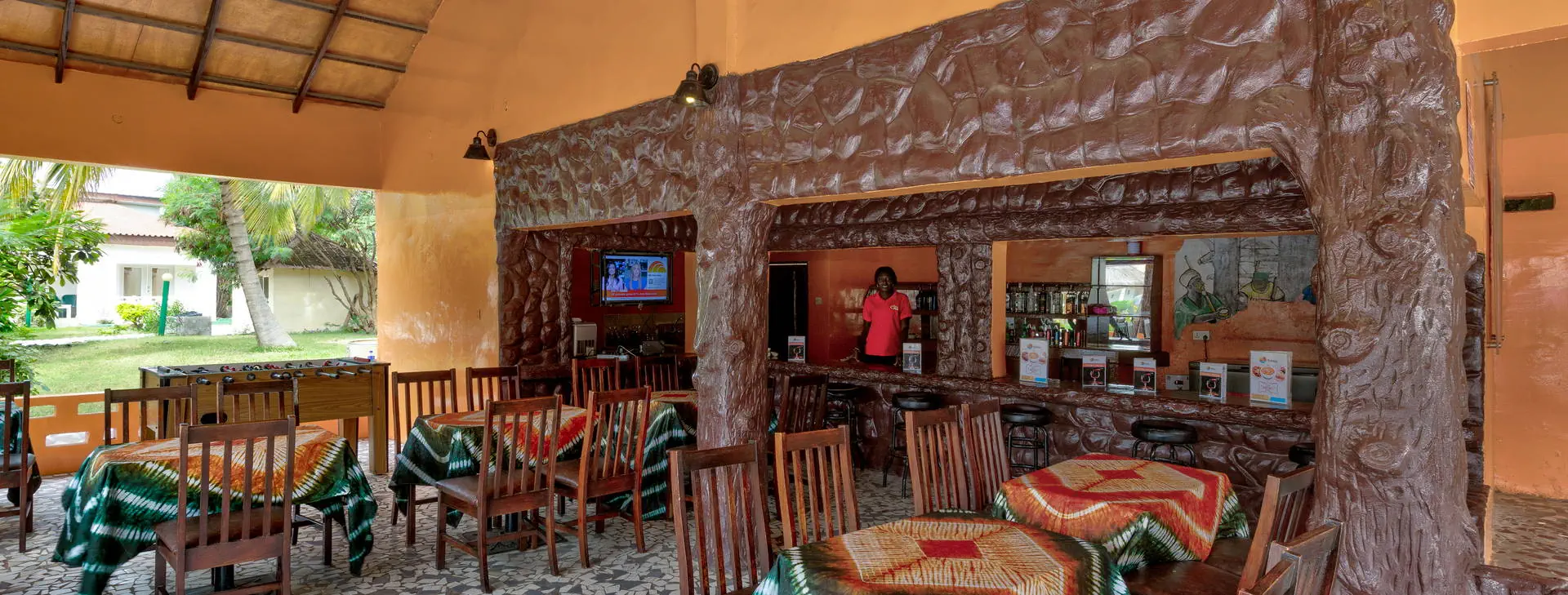Położenie: Doskonale położony, w samym centrum najbardziej rozwiniętego kurortu jakim jest Kololi. Hotel otoczony jest zadbanym ogrodem, który sprzyja relaksowi, a jednocześnie mamy dosłownie kilka kroków do centrum Kololi, gdzie znajdziemy liczne sklepiki, bazar z pamiątkami, bary, kluby, czy dyskoteki. W okolicy znajdują się najlepsze w okolicy kluby z muzyką na żywo, gdzie codziennie odbywają się koncerty zespołów z Gambii, Senegalu, czy Ghany. W pobliżu znajduje się Park Narodowy Bijilo, w którym można oglądać małpy i ciekawe ptaki. Polecamy wizytę w pobliskim hotelu Senegambia, gdzie codziennieo 11:30 odbywa się karmienie sępów. Odległość od lotniska ok. 20 km, transfer trwa ok. 30 min. Plaża: Hotel usytuowany jest bezpośrednio przy piaszczystej plaży. Serwis plażowy - bezpłatny. Do dyspozycji gości: Hotel składa się z kilku parterowych budynków oraz z dwóch piętrowych budynków, otoczonych zadbanym, tropikalnym ogrodem. Recepcja czynna 24 - godz., restauracja, bar przy basenie, bar z przekąskami na plaży, sejf w recepcji (płatny 11 euro /tydzień), ogród, taras słoneczny, bezpłatne leżaki i parasole przy basenie. Pokoje: Hotel oferuje łącznie około 80 pokoi. Funkcjonalne pokoje 2-osobowe typu standard (możliwość 1 dostawki dla osoby dorosłej lub dla dziecka), z łazienką (prysznic, WC). Wyposażone w lodówkę (za opłatą - ok. 25 euro/tydzień), balkon lub taras. Pokoje są wyposażone w klimatyzację za dopłatą (ok. 15 euro/dzień/pokój) Wyżywienie: Śniadania kontynentalne w formie bufetu. Za dopłatą obiadokolacje - serwowane, składające się z przystawki, dania głównego i deseru (najczęściej owoce). Napoje do obiadokolacji dodatkowo płatne. Program sportowy i animacyjny: Na terenie hotelu basen zewnętrzny z wydzieloną częścią dla dzieci, tenis stołowy, siatkówka. Odpłatnie: masaż, sporty wodne na plaży. Internet: Z Internetu można korzystać jedynie przy recepcji – odpłatnie, ok.3 euro/dzień. Kategoria lokalna: ** Strona www: www.holidaybeachclubgambia.com Naszym zdaniem: Najlepsze położenie hotelu, przy plaży i w samym centrum kurortu jest zachętą do korzystania z miejscowych atrakcji. Dodatkową gwiazdkę przyznajemy właśnie za lokalizację.