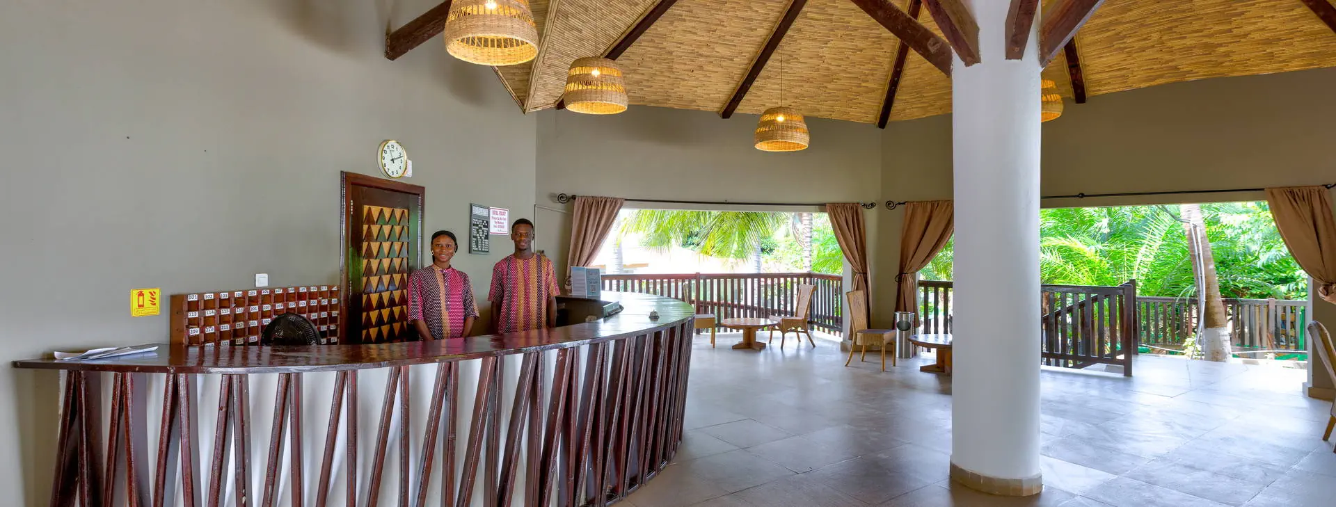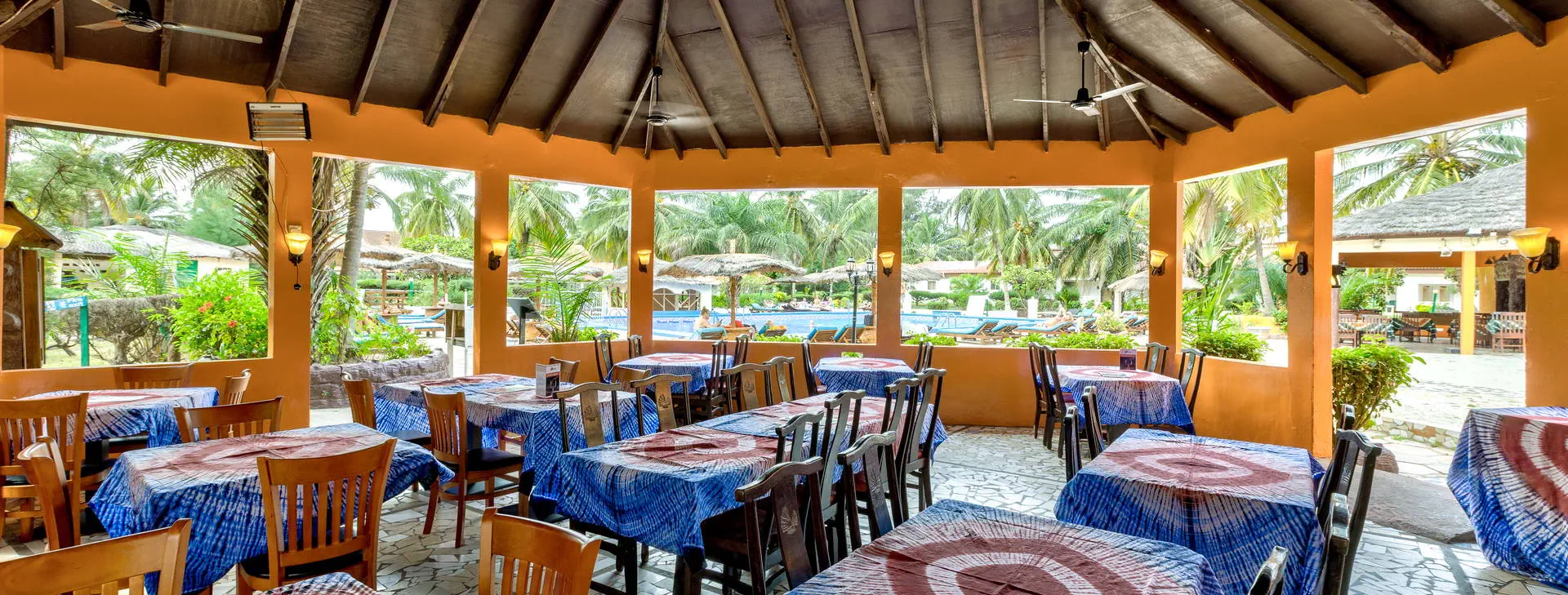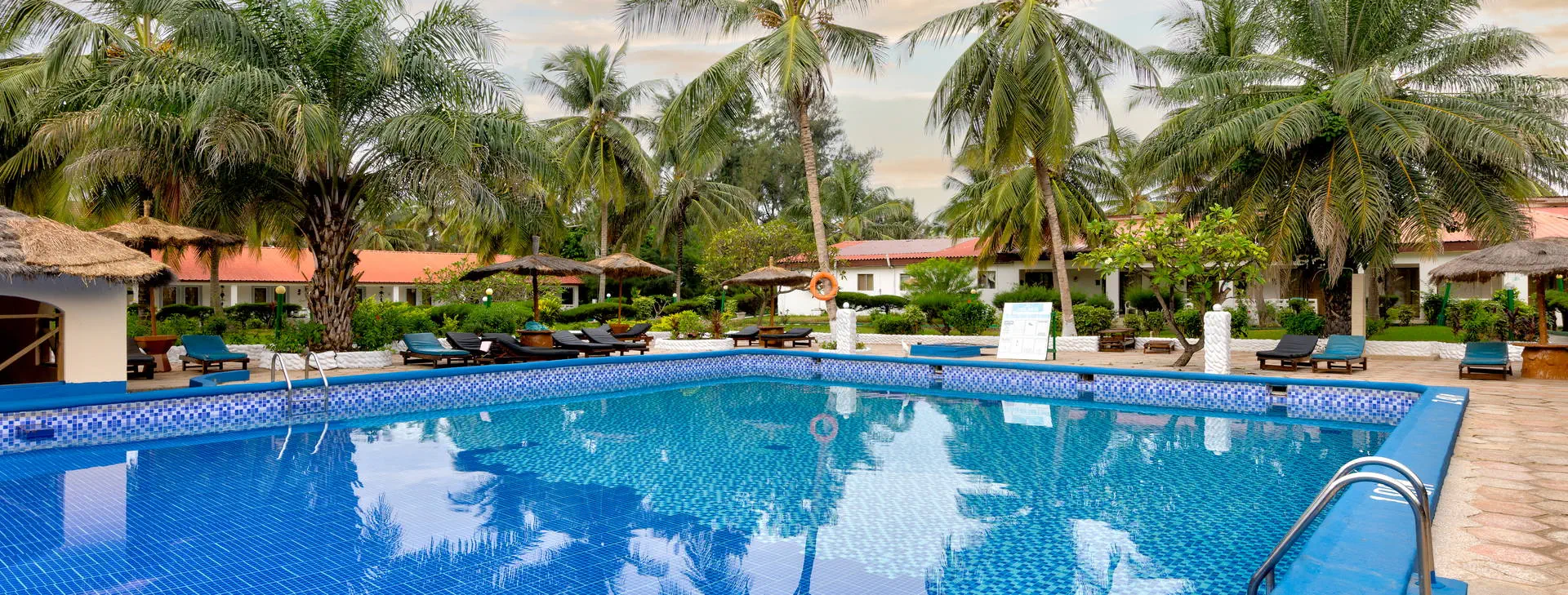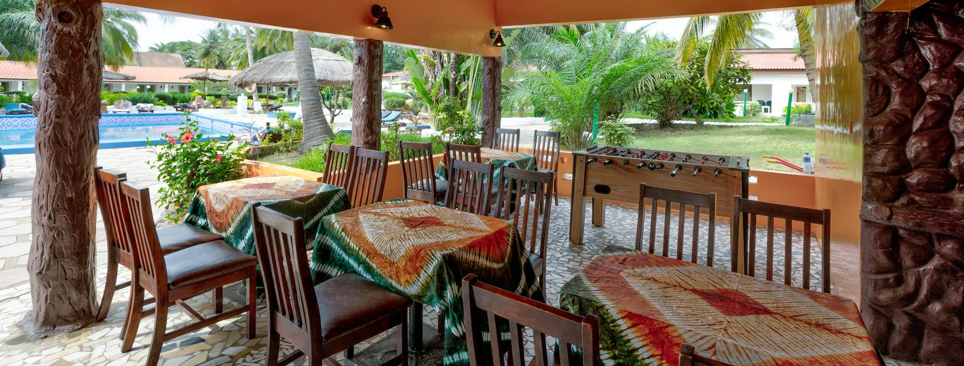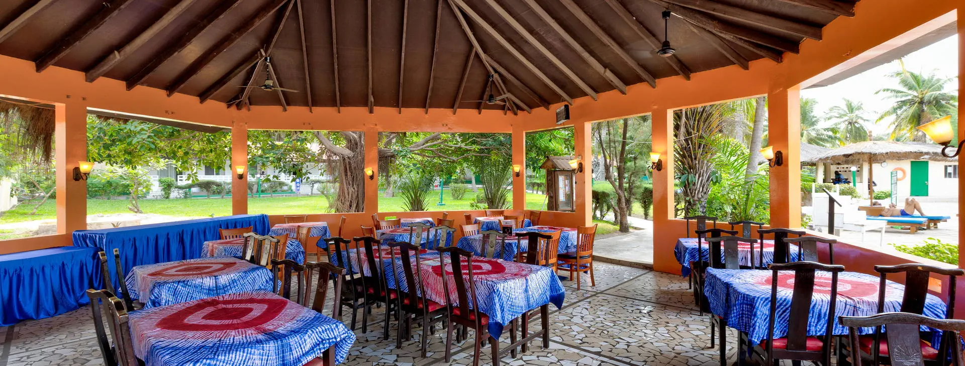 Położenie: Doskonale położony, w samym centrum najbardziej rozwiniętego kurortu jakim jest Kololi. Hotel otoczony jest zadbanym ogrodem, który sprzyja relaksowi, a jednocześnie mamy dosłownie kilka kroków do centrum Kololi, gdzie znajdziemy liczne sklepiki, bazar z pamiątkami, bary, kluby, czy dyskoteki. W okolicy znajdują się najlepsze w okolicy kluby z muzyką na żywo, gdzie codziennie odbywają się koncerty zespołów z Gambii, Senegalu, czy Ghany. W pobliżu znajduje się Park Narodowy Bijilo, w którym można oglądać małpy i ciekawe ptaki. Polecamy wizytę w pobliskim hotelu Senegambia, gdzie codziennieo 11:30 odbywa się karmienie sępów. Odległość od lotniska ok. 20 km, transfer trwa ok. 30 min. Plaża: Hotel usytuowany jest bezpośrednio przy piaszczystej plaży. Serwis plażowy - bezpłatny. Do dyspozycji gości: Hotel składa się z kilku parterowych budynków oraz z dwóch piętrowych budynków, otoczonych zadbanym, tropikalnym ogrodem. Recepcja czynna 24 - godz., restauracja, bar przy basenie, bar z przekąskami na plaży, sejf w recepcji (płatny 11 euro /tydzień), ogród, taras słoneczny, bezpłatne leżaki i parasole przy basenie. Pokoje: Hotel oferuje łącznie około 80 pokoi. Funkcjonalne pokoje 2-osobowe typu standard (możliwość 1 dostawki dla osoby dorosłej lub dla dziecka), z łazienką (prysznic, WC). Wyposażone w lodówkę (za opłatą - ok. 25 euro/tydzień), balkon lub taras. Pokoje są wyposażone w klimatyzację za dopłatą (ok. 15 euro/dzień/pokój) Wyżywienie: Śniadania kontynentalne w formie bufetu. Za dopłatą obiadokolacje - serwowane, składające się z przystawki, dania głównego i deseru (najczęściej owoce). Napoje do obiadokolacji dodatkowo płatne. Program sportowy i animacyjny: Na terenie hotelu basen zewnętrzny z wydzieloną częścią dla dzieci, tenis stołowy, siatkówka. Odpłatnie: masaż, sporty wodne na plaży. Internet: Z Internetu można korzystać jedynie przy recepcji – odpłatnie, ok.3 euro/dzień. Kategoria lokalna: ** Strona www: www.holidaybeachclubgambia.com Naszym zdaniem: Najlepsze położenie hotelu, przy plaży i w samym centrum kurortu jest zachętą do korzystania z miejscowych atrakcji. Dodatkową gwiazdkę przyznajemy właśnie za lokalizację.