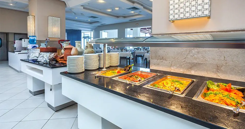 All Inclusive: Śniadanie, obiad i kolacja w formie bufetu Popołudniowe przekąski, Kolacja w restauracji tematycznej bezpłatnie, raz na pobyt (wymagana wcześniejsza rezerwacja) Napoje bezalkoholowe i alkohole lokalnej produkcji serwowane w barach wskazanych przez hotel w godzinach ich otwarcia od 10:00 do 23:00 Alkohole importowane są dodatkowo płatne Dieta wegetariańska - zgłosić przed wyjazdem