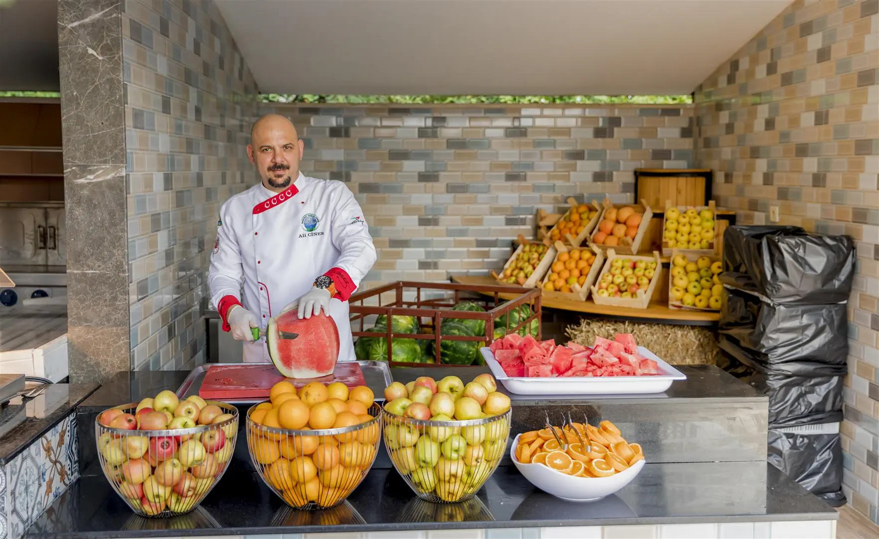Śniadanie (07:00 - 10:00) - MAIN RESTAURANT, stół szwedzki, Późne śniadanie (10:00 - 10:30) - MAIN RESTAURANT, stół szwedzki, Obiad (12:30 - 14:30) - MAIN RESTAURANT, stół szwedzki, Podwieczorek (11:00 - 18:00) - PATISSERIE, stół szwedzki, Kolacja (19:00 - 21:00) - MAIN RESTAURANT, stół szwedzki, Późna kolacja (23:30 - 23:59) - MAIN RESTAURANT, stół szwedzki, ALA CARTE RESTAURANT (19:00 - 21:00) (19:00 - 21:00), raz w tygodniu, Kuchnia: owoce morza , Wymagana rezerwacja: Tak, LOBBY BAR (10:00 - 23:59), Napoje: alkohole lokalne, napoje bezalkoholowe (10:00 - 23:59), POOL BAR (10:00 - 18:00), Napoje: alkohole lokalne, napoje bezalkoholowe (10:00 - 18:00), POOL BAR (24h), Napoje: alkohole lokalne, napoje bezalkoholowe (24h), napoje bezalkoholowe, alkohole lokalne, wybrane alkohole importowane ¹⁾, lody, pakiety dla nowożeńców, pakiety urodzinowe (na życzenie) ¹⁾, cukiernia, Minibar w pokoju ¹⁾ - dodatkowo płatne