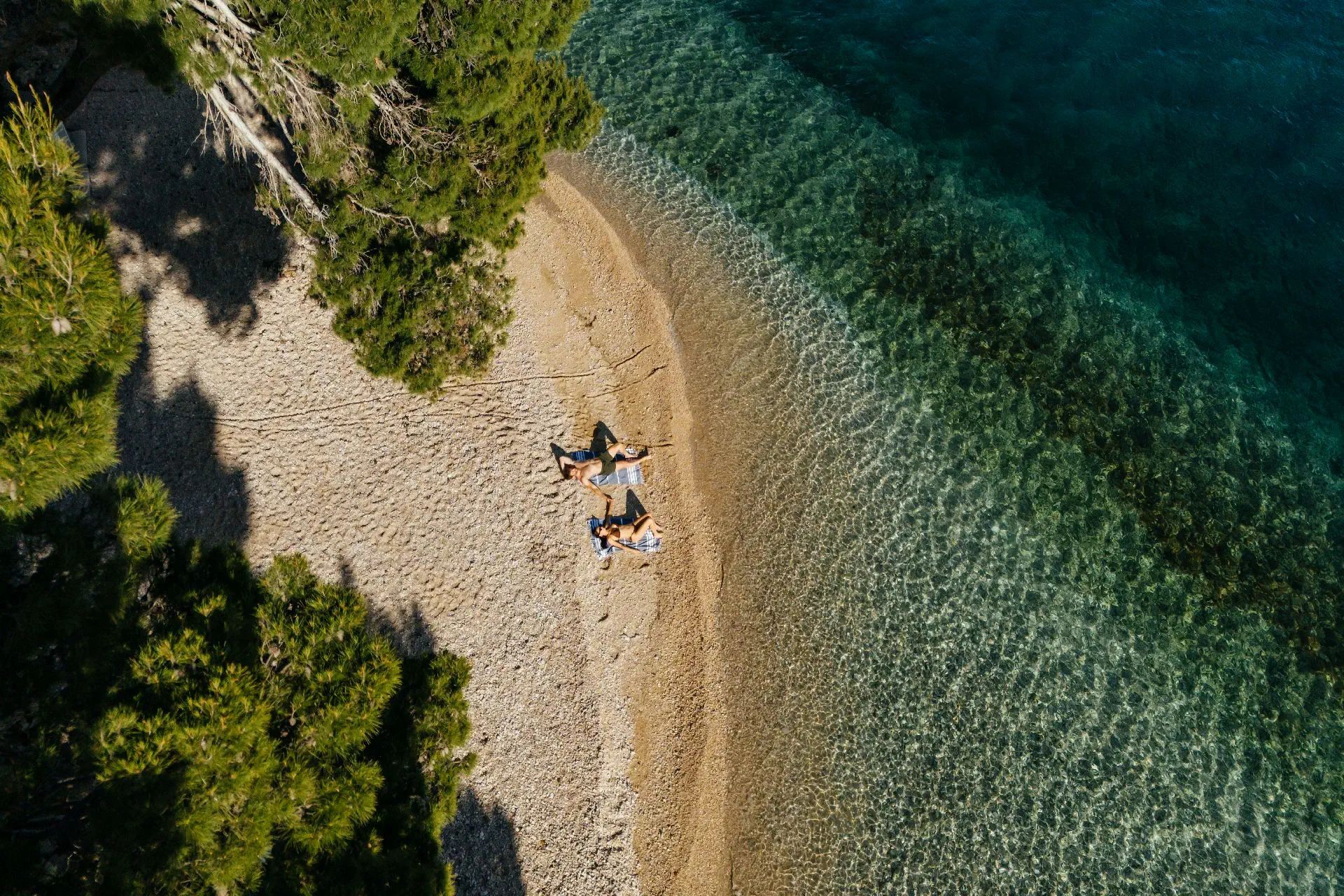 przy ośrodku, żwirowo-kamienista. Leżaki (odpłatnie / ograniczona liczba).