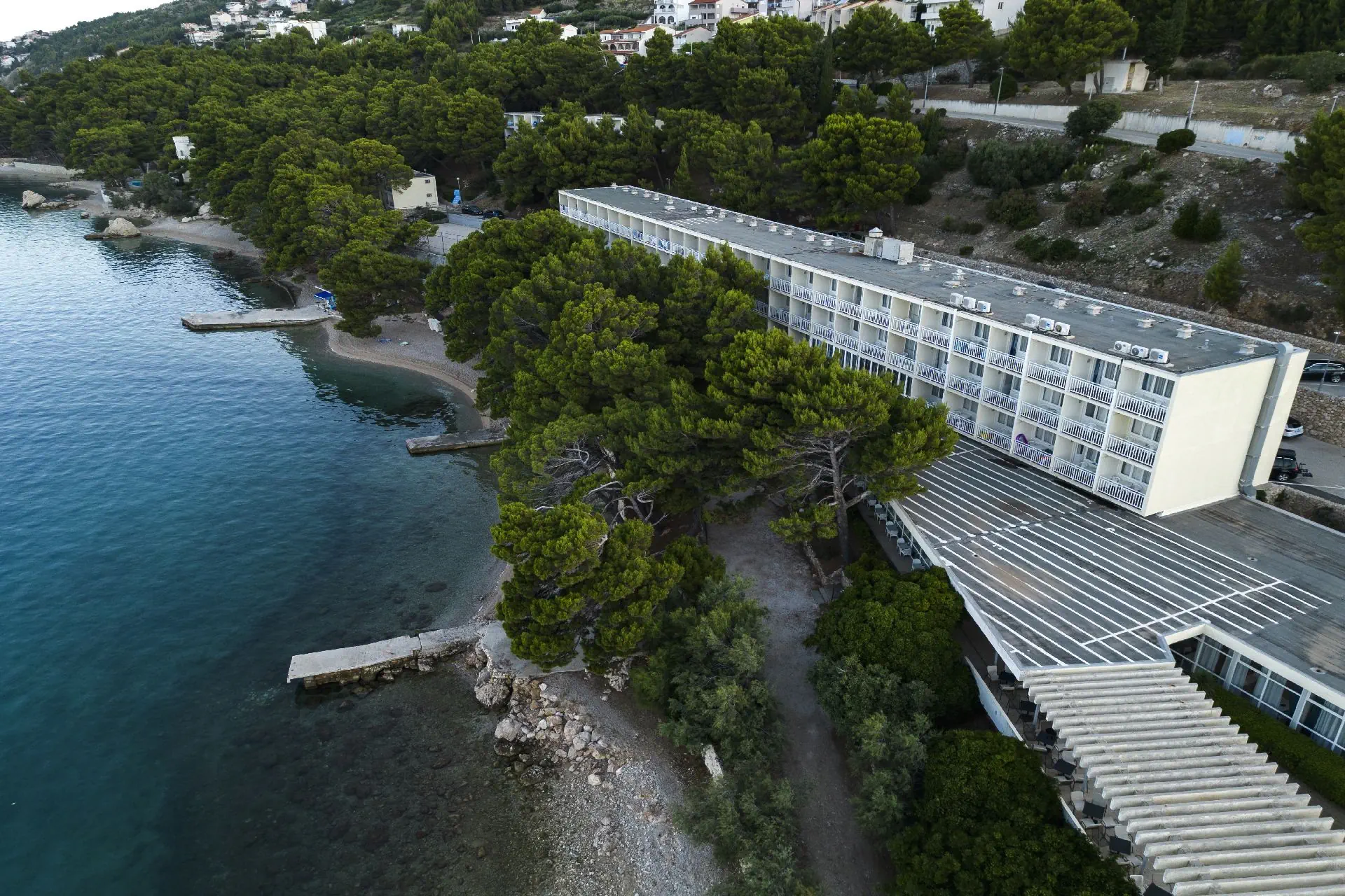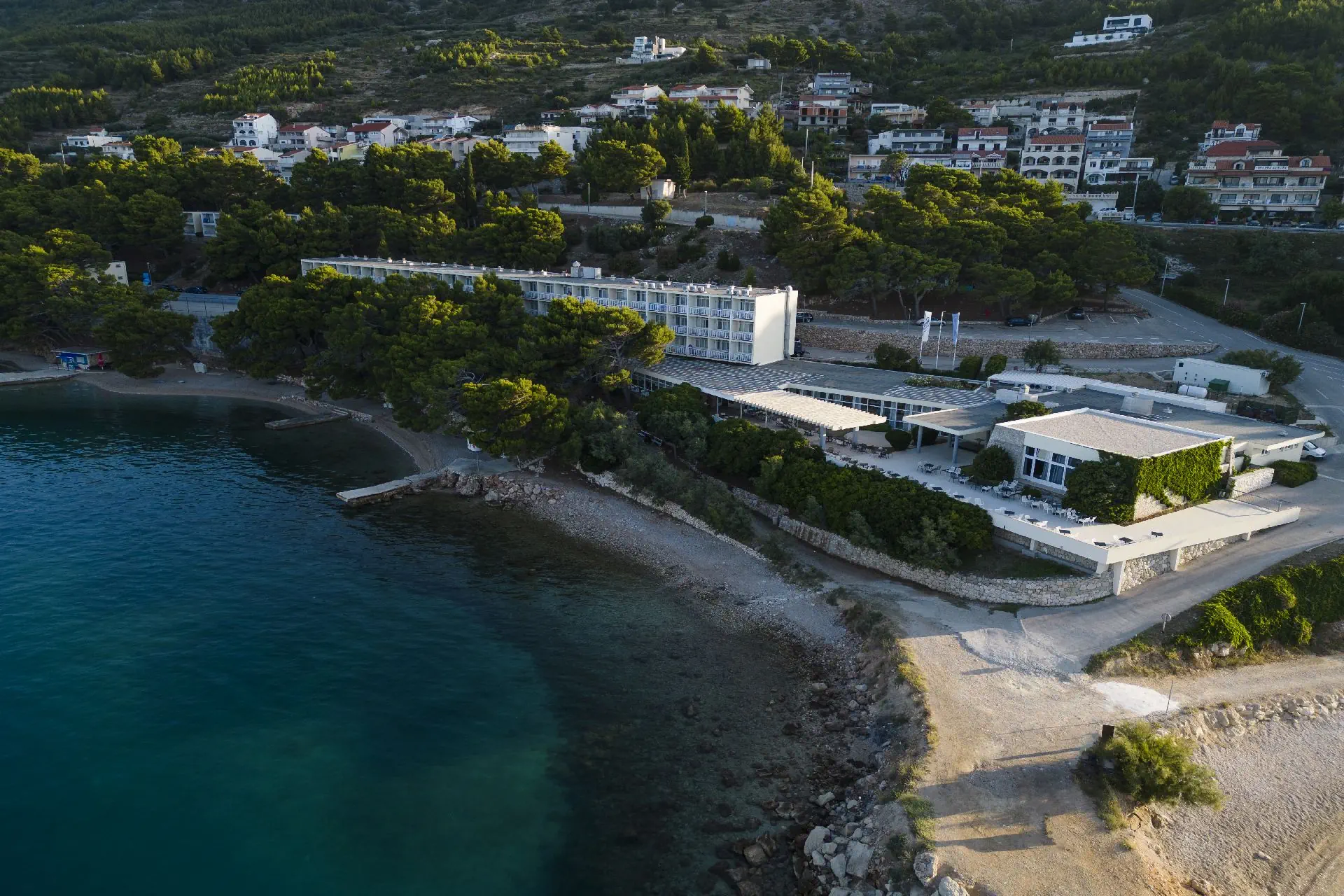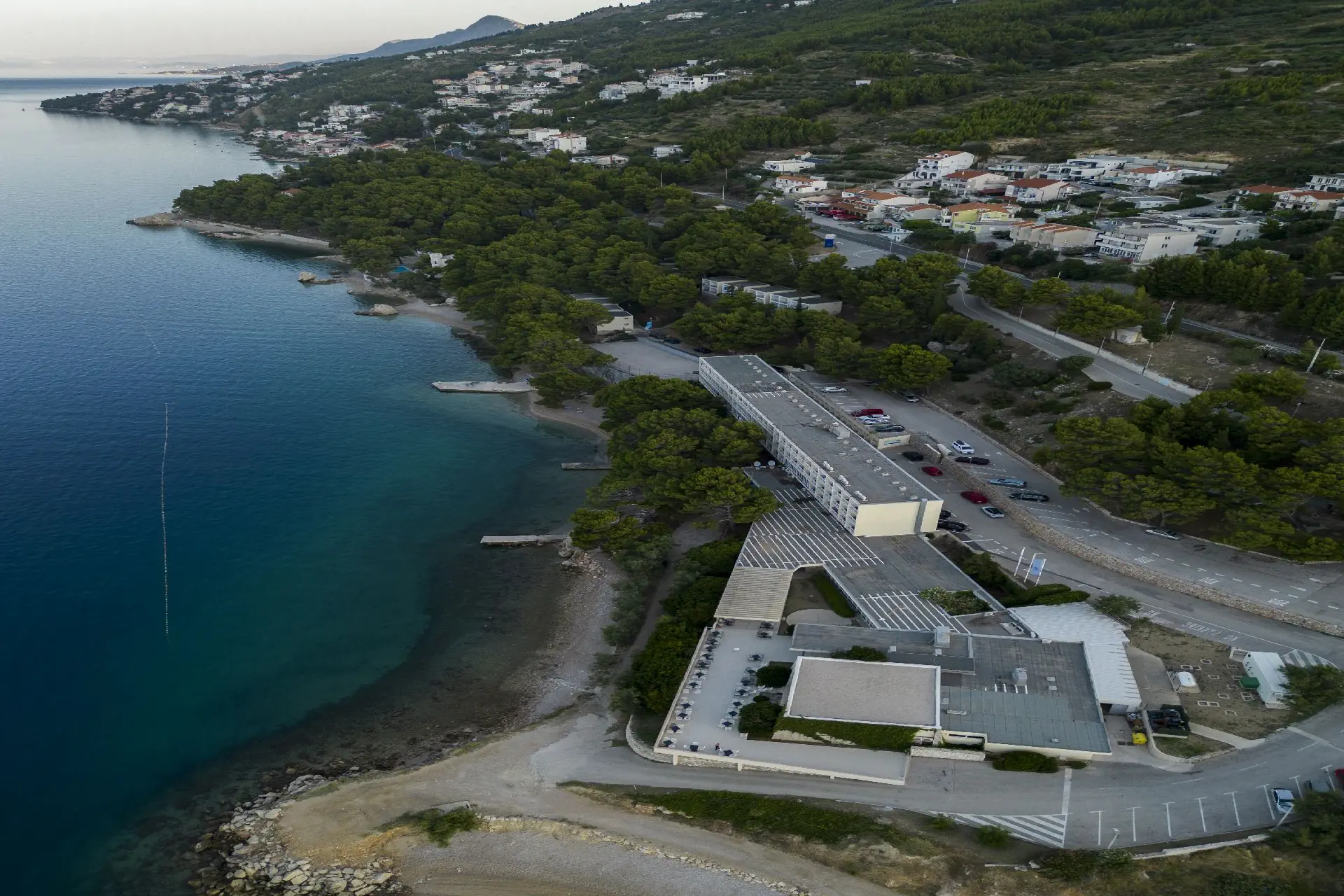 na wzgórzu, w Lokvie Rogoznica - na Riwierze Makarskiej, niedaleko miejscowości Omis (Riwiera Makarska), ok. 25 m od Splitu, ok. 50 km od lotniska w Splicie, w otoczeniu lasu sosnowego.