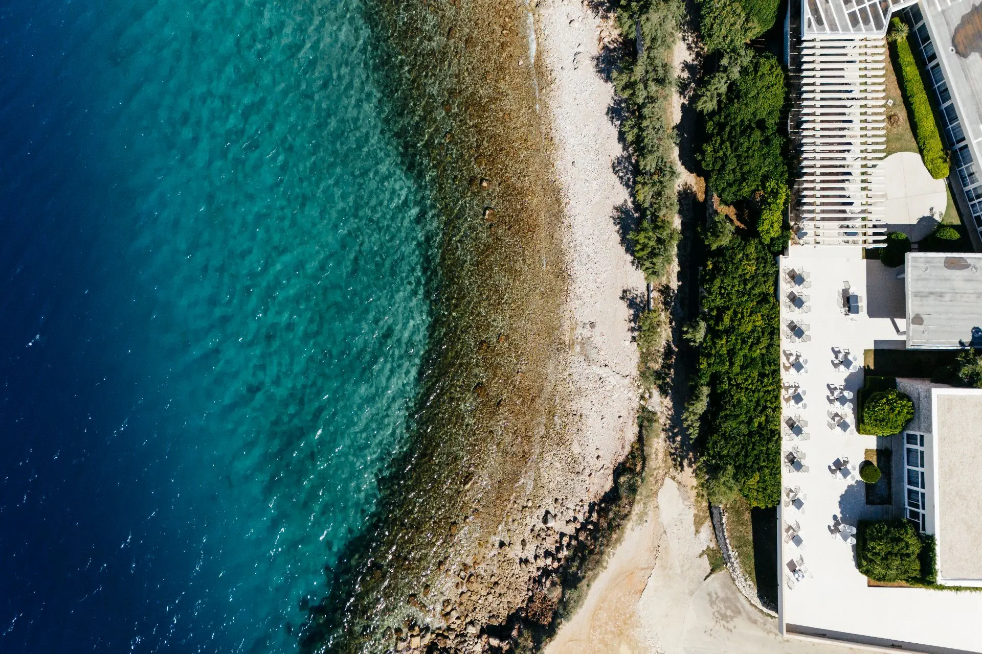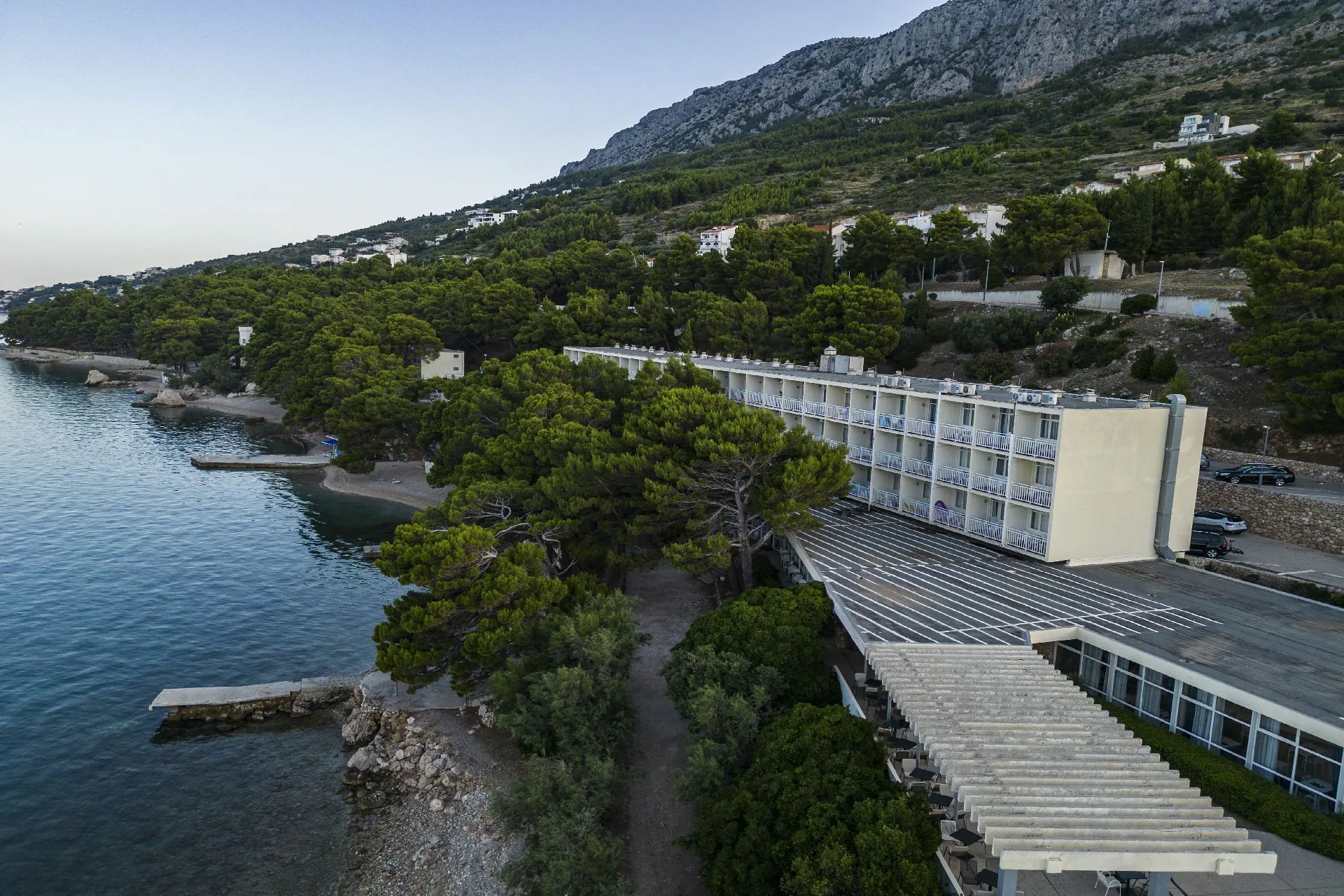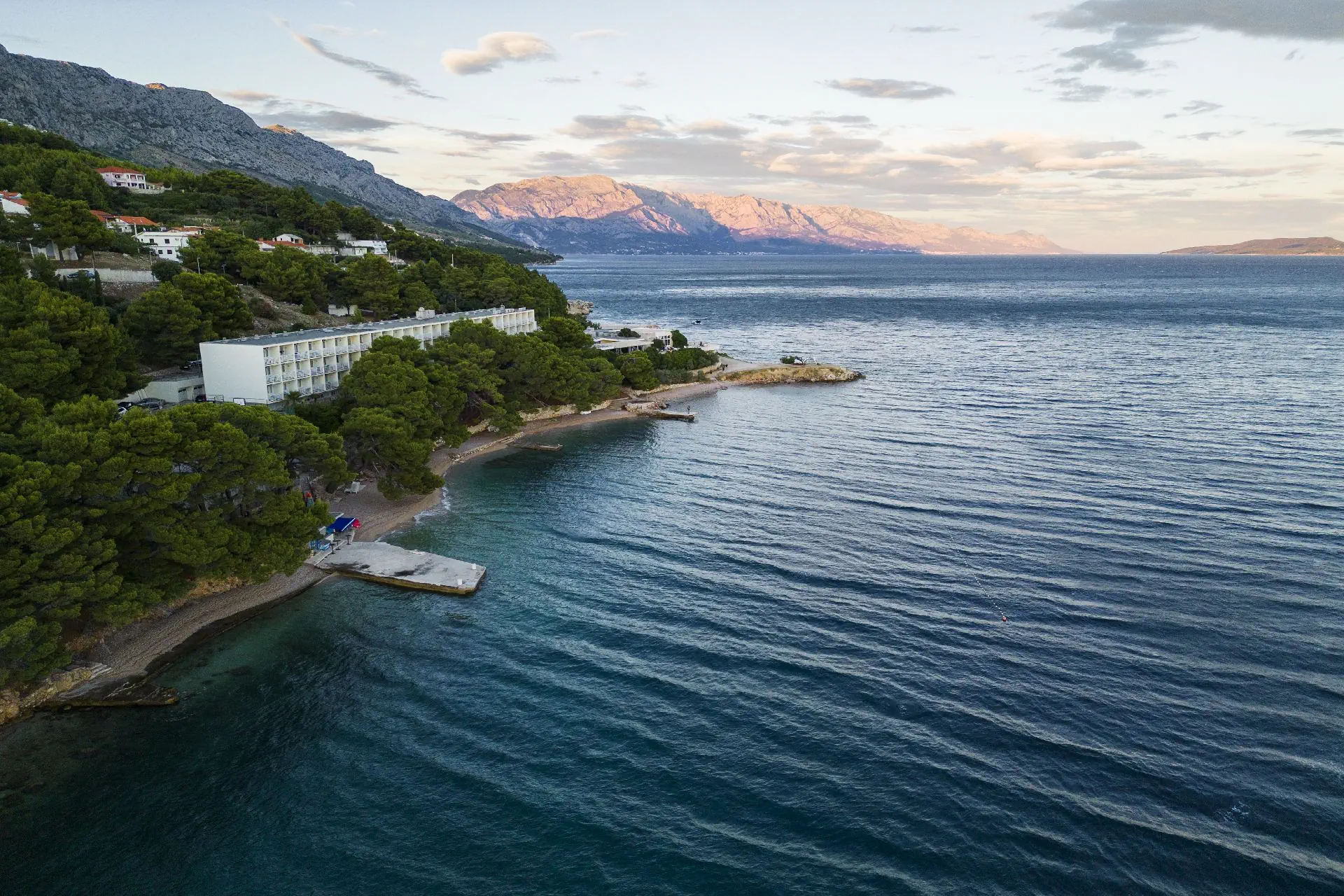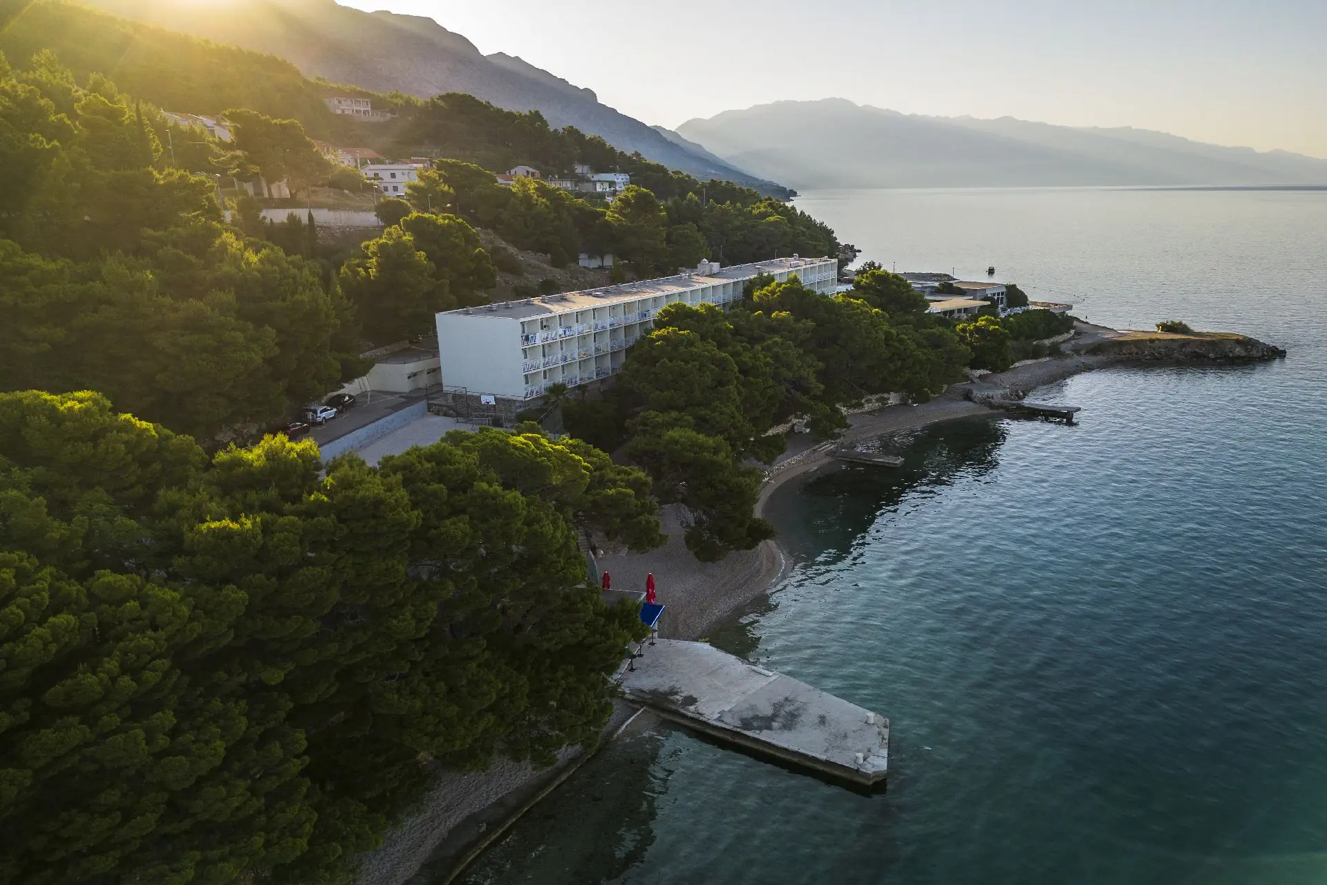 na wzgórzu, w Lokvie Rogoznica - na Riwierze Makarskiej, niedaleko miejscowości Omis (Riwiera Makarska), ok. 25 m od Splitu, ok. 50 km od lotniska w Splicie, w otoczeniu lasu sosnowego.