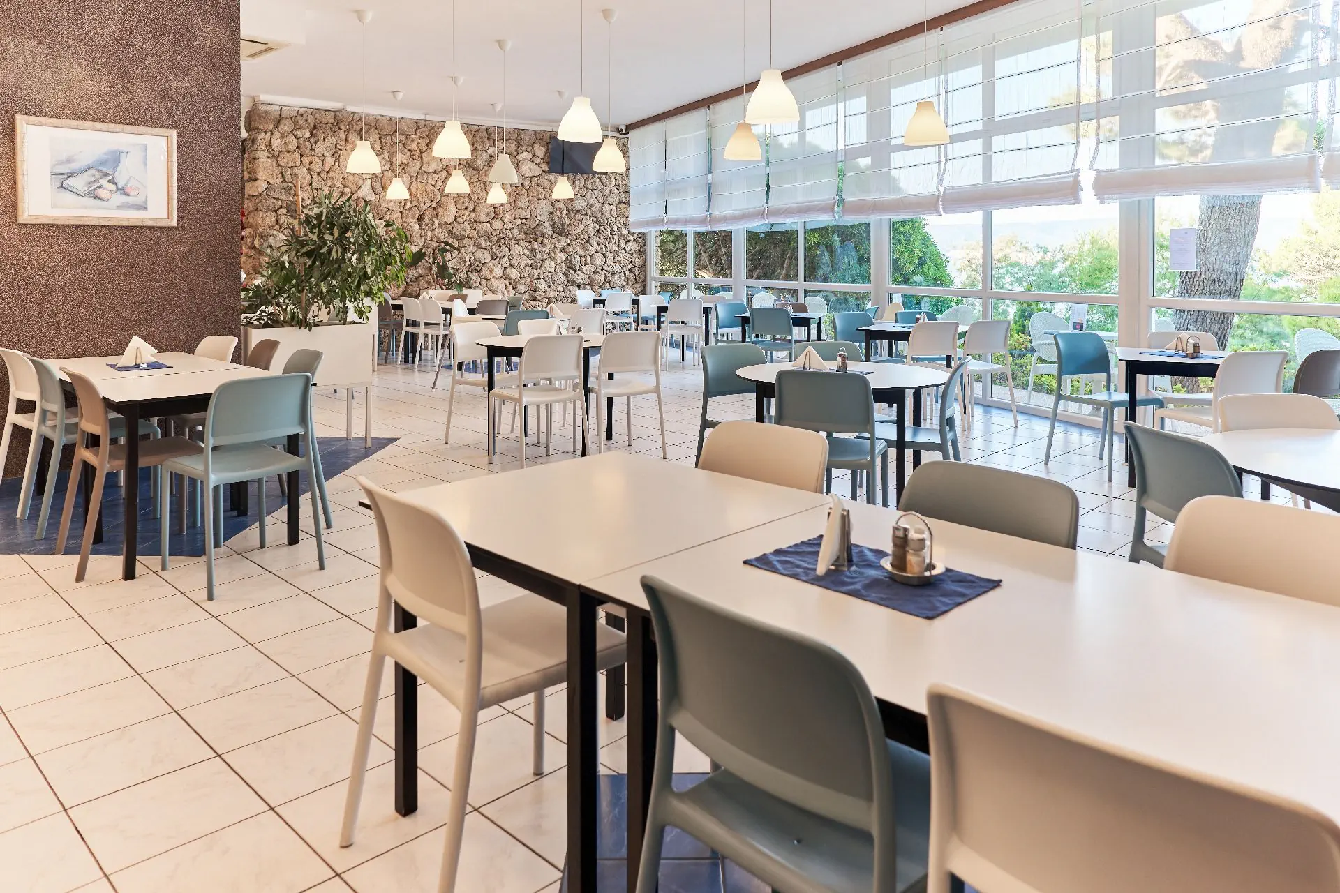 ok. 20 m2, klimatyzacja, internet WiFi, sejf, SAT-TV, telefon (odpłatnie), suszarka do włosów, łazienka/WC, balkon. Obiekt nie jest przystosowany dla osób niepełnosprawnych (brak windy / kaskadowe położenie).
