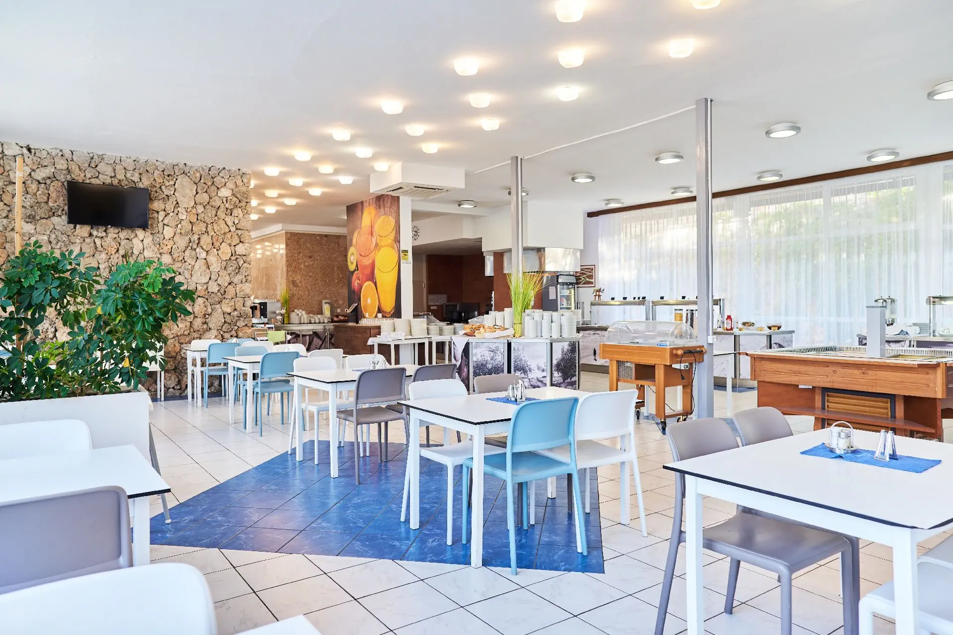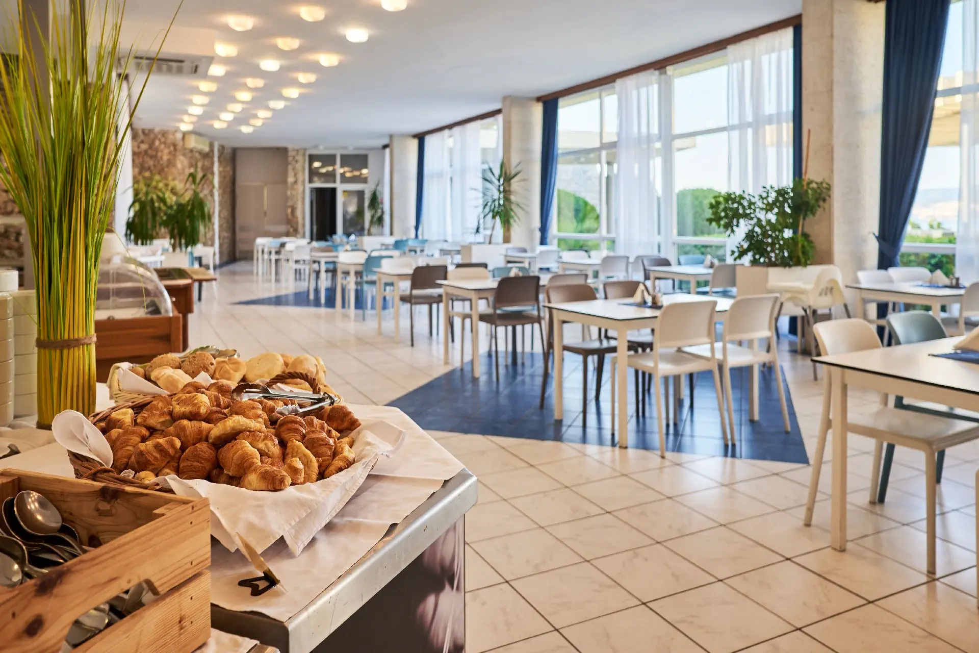 ALL INCLUSIVE: śniadanie (07:00-10:00), lunch (12:00-14:00) i obiadokolacja (19:00-21:00) w formie bufetu, napoje z dystrybutora do posiłków (gazowane i niegazowane napoje i soki, woda), lokalne wino i piwo do lunchu i obiadokolacji; przekąska (15:00-17:00), po południu napoje w barze All Inclusive (lokalne wino i piwo, napoje bezalkoholowe - gazowane i niegazowane, 5 rodzajów alkoholu, koktalje, kawa filtrowana). *godziny oraz forma posiłków mogą ulec zmianie w trakcie sezonu.