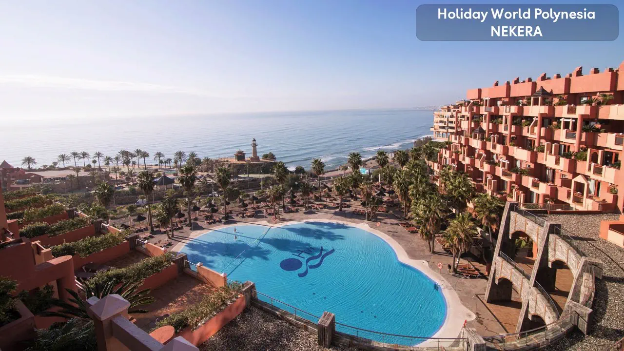Holiday World Polynesia to czterogwiazdkowy hotel All Inclusive na hiszpańskim wybrzeżu Costa del Sol, zaprojektowany z egzotycznym motywem inspirowanym polinezyjskimi wyspami Bora Bora, Samoa i Wyspą Wielkanocną, tworząc wyjątkowy, wakacyjny klimat w całym obiekcie. Obiekt oferuje przestronne pokoje i apartamenty z widokami na Morze Śródziemne, bogatą ofertę gastronomiczną w restauracjach bufetowych i tematycznych oraz rozległy program rekreacyjny z dużym basenem z widokiem na morze, animacjami, strefami relaksu i atrakcjami dla dzieci. Goście mogą korzystać ze spa i wellness, klubu dla najmłodszych, rozrywkowej strefy z dyskoteką, kręgielnią, mini golfem i kinową salą oraz z bezpłatnego dostępu do szerokiego Beach Clubu z basenami i zjeżdżalniami w ramach resortu. Hotel jest częścią kompleksu Holiday World Resort, który łączy wypoczynek, aktywność i zabawę dla rodzin i par w atrakcyjnej lokalizacji na Costa del Sol