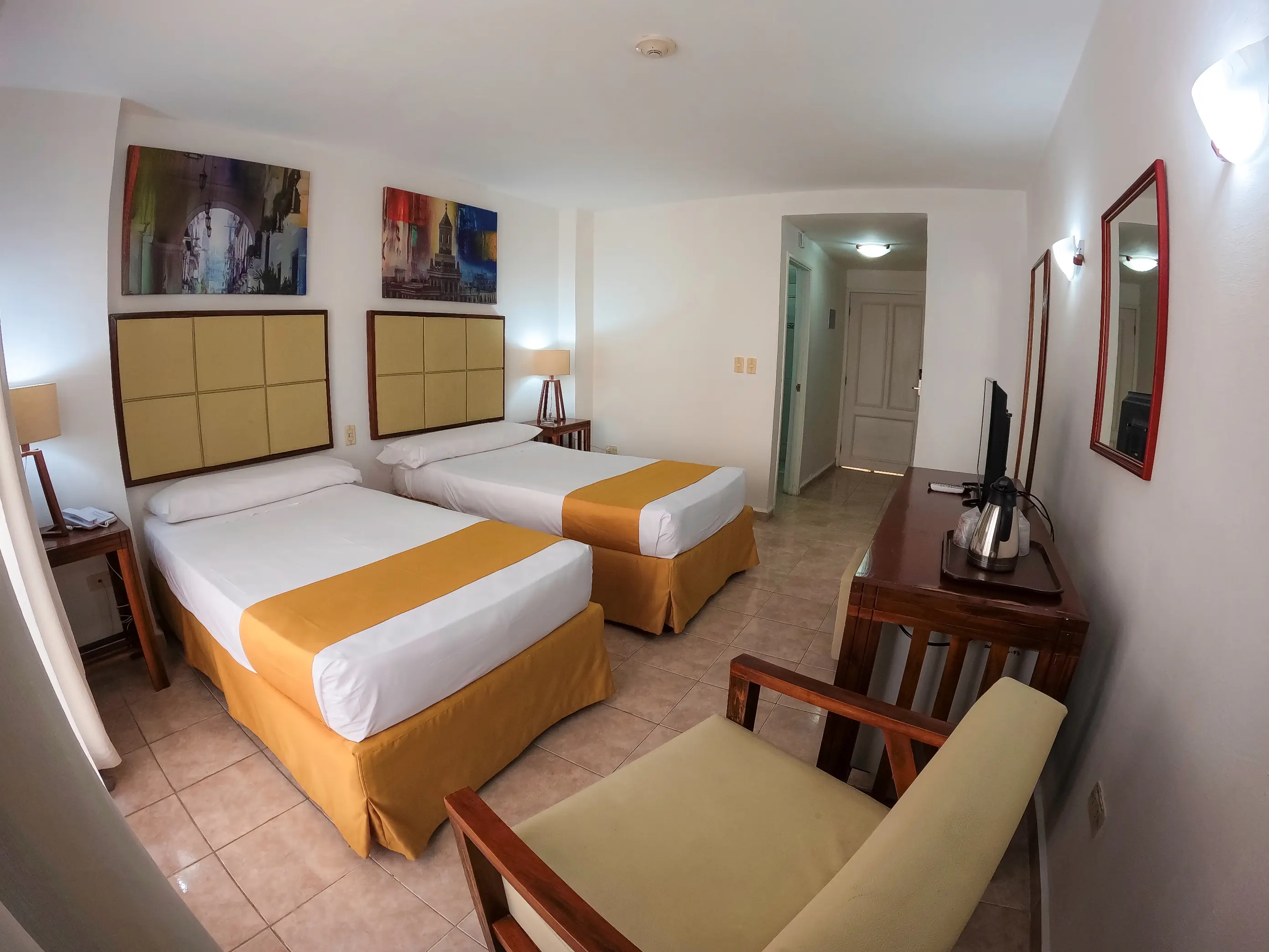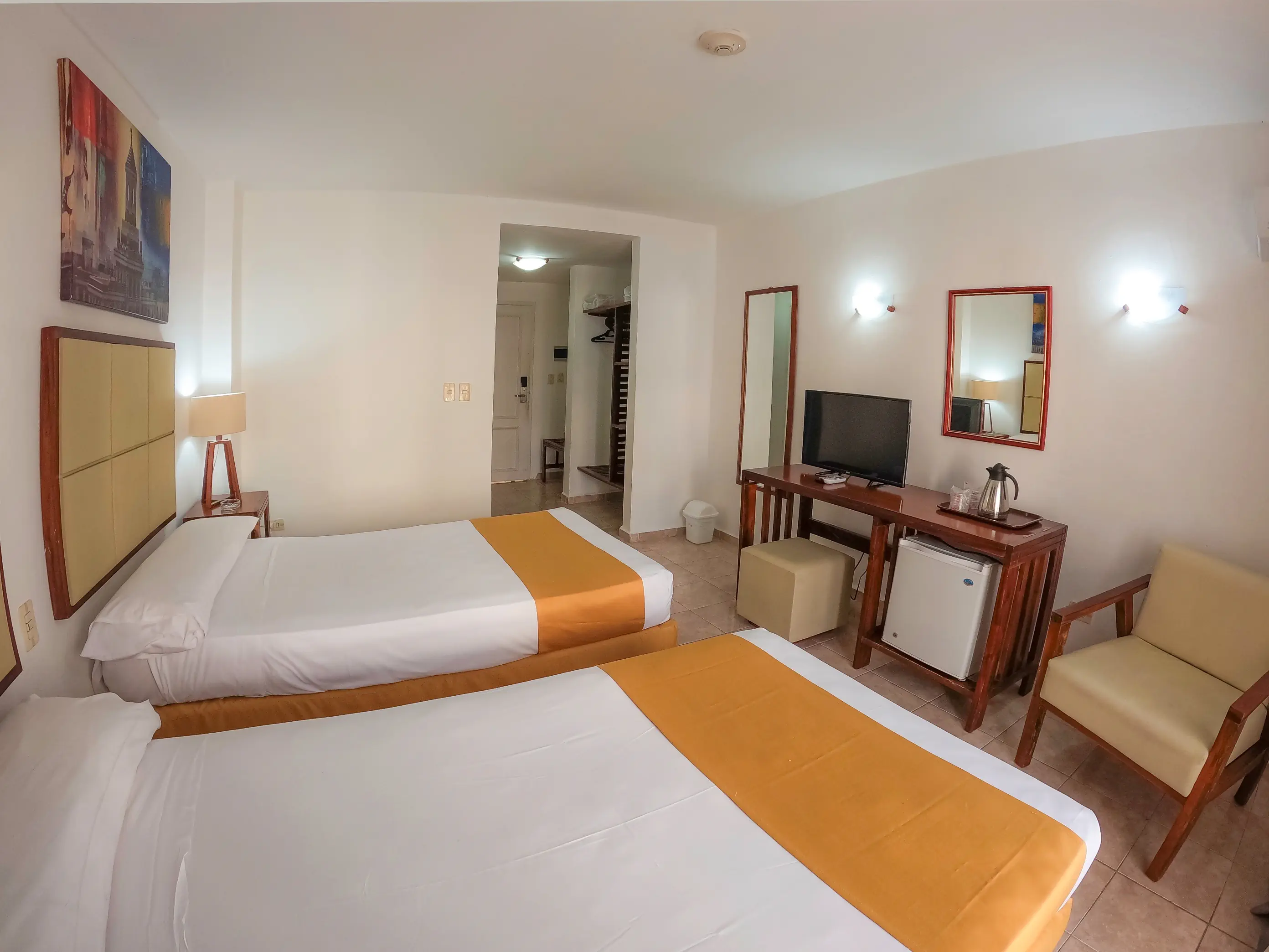 Dla max. 3 osób, Kanały telewizji: Angielski, Telefon w pokoju, wanna lub prysznic , Powierzchnia pokoju: ok. 16 m2, Rodzaj podłogi: płytki, Sprzątanie cykliczne, 1 sypialnia, Maksymalna liczba osób dorosłych: 2, Maksymalna liczba dzieci: 2, Widok niesprecyzowany ,Widok na miasto, Liczba łazienek: 1, Liczba toalet: 1, Klimatyzacja: Klimatyzacja centralna