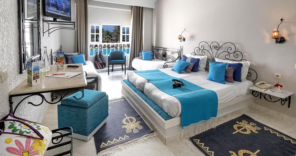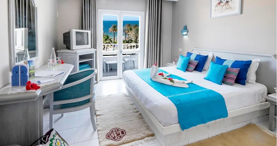 Pokój Standard (standard room) - Klimatyzacja (15.06-15.09) - Łazienka z prysznicem lub wanną, toaleta - TV-Sat, telefon - Sejf - płatny ok. 3 TND/dzien - Balkon lub taras - Pokoj Standard Sea View: z widokiem na morze Pokój Standard Family - Wyposażenie jak w pokoju Standard - Przestronny