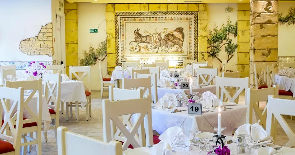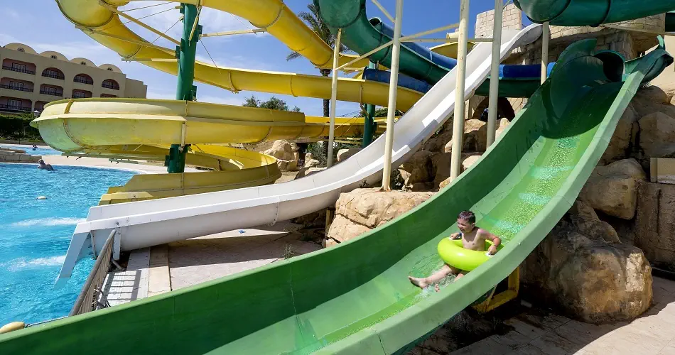 - Recepcja - Restauracja główna oraz 2 restauracje a'la carte (włoska i orientalna - dodatkowo płatne) - Kilka barów (w tym płatne) - Basen zewnętrzny, basen dla dzieci - Basen ze zjeżdżalniami - Dyskoteka (napoje płatne) - Sklepy z pamiątkami - Pralnia - płatna - Salon piękności - płatny - Oficjalna kategoria hotelu 3*