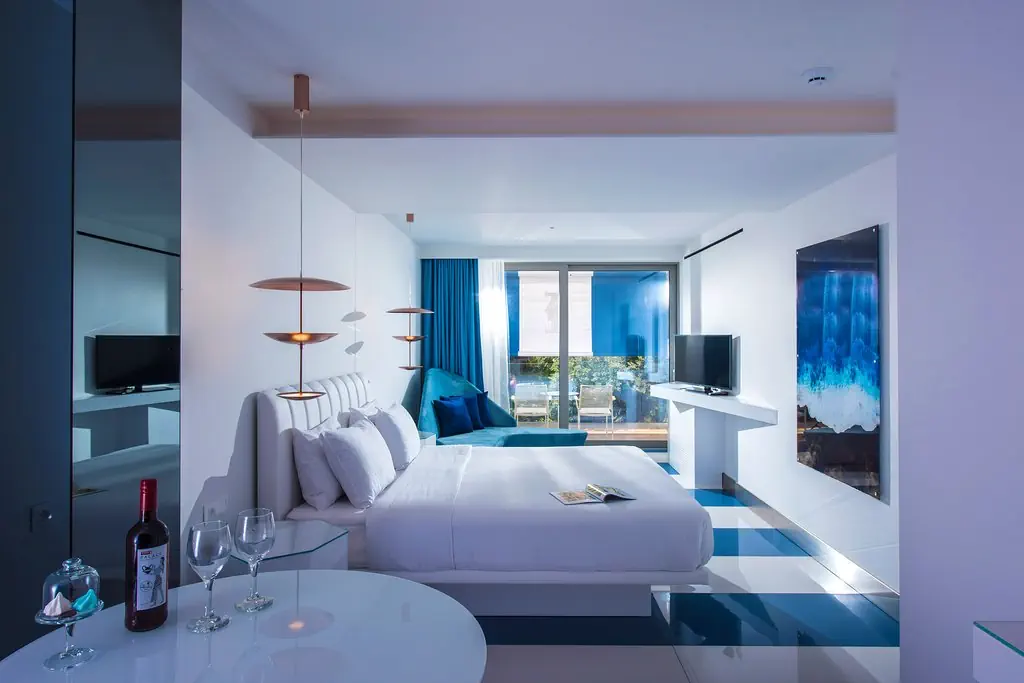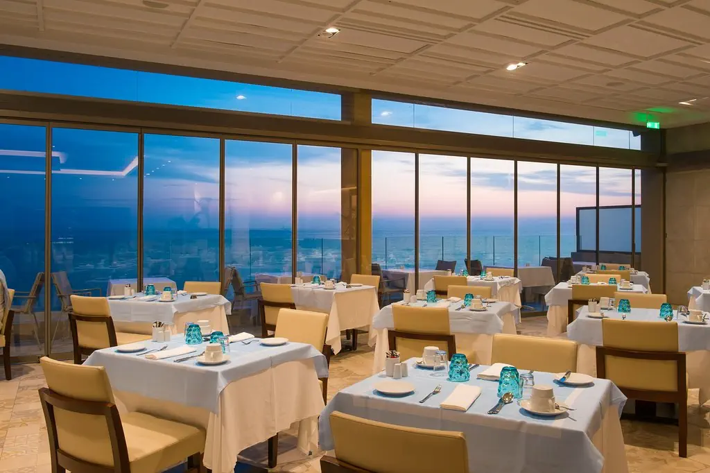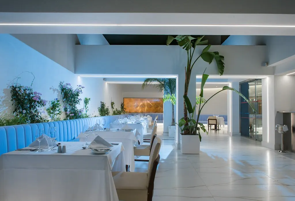komfortowy hotel oferuje 227 pokoi. Do dyspozycji Gości: hol powitalny z recepcją, pomieszczenie do wypoczynku, windy, restauracja główna, restauracja a la carte (obie z tarasami), lobby bar, bar przy basenie. Na zewnątrz znajdują się 2 baseny z morską wodą: basen typu activity oraz basen infinity z przepiękną panoramą na morze. Leżaki, parasole słoneczne przy basenach w cenie.