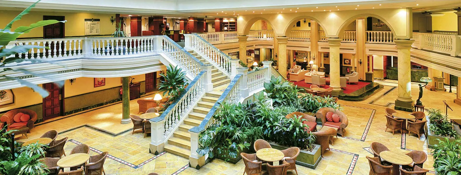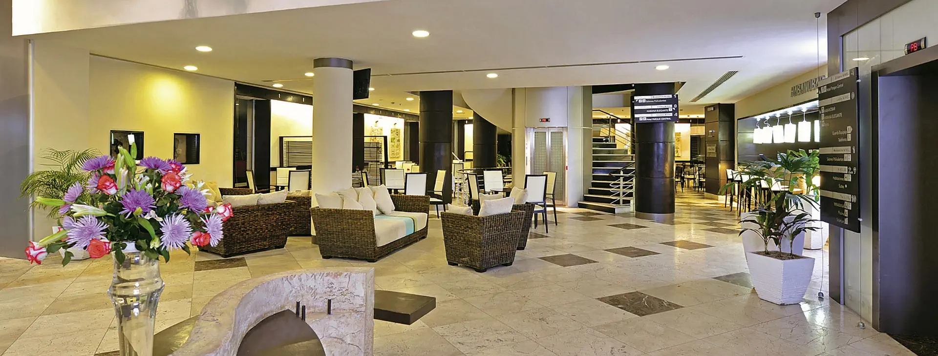 Całodobowa recepcja, budynek główny, budynek kolonialny, ogród, 4 restauracje: „Mediterraneo” z kuchnią śródziemnomorską, „El Paseo” steak house, „Habana Elegante” z kuchnią międzynarodową, „Mirabana” z kuchnią międzynarodową, 4 bary: „El Portico” w lobby, „Habanobar” w lobby, „Nuevo Mundo” przy basenie, „Mirabana” przy basenie, usługi konsjerża, udogodnienia dla osób z niepełnosprawnością. Za dopłatą: wypożyczalnia samochodów, kantor, sejf w recepcji, codzienne gazety, sklep, parking przy ulicy i w garażu, lekarz na wezwanie, sale konferencyjne.