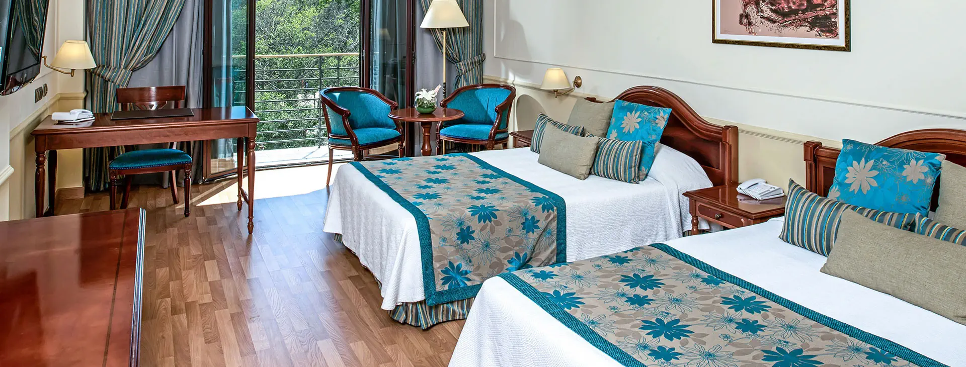 Obiekt posiada 278 pokoi w budynku głównym oraz 149 w budynku kolonialnym. Wszystkie są przestronne i eleganckie, ozdobione drewnianymi podłogami i wykończone w stylu kolonialnym. Wszystkie zostały wyposażone w klimatyzację, łazienkę (wc, wanna i/lub prysznic, suszarką do włosów), zestaw do parzenia kawy i herbaty, TV Sat, telefon, sejf, żelazko i deska do prasowania, minibar (za dodatkową opłatą). Pokoje typu Modern Double dla 1-3 osóbo pow. ok. 34m2. Pokoje typu Modern Junior Suite dla 1-3 osób o pow. ok. 42m2. Pokoje typu Modern Suite dla 1-3 osób opow. ok. 52m2. Pokoje typu Colonial Double dla 1-2 osóbo pow. ok. 35m2. Pokoje typu Colonial Junior Suiteo pow. ok. 40m2. Łóżeczko dla dzieci na życzenie. Wi-Fi płatne dodatkowo. Hotel nie akceptuje zwierząt.