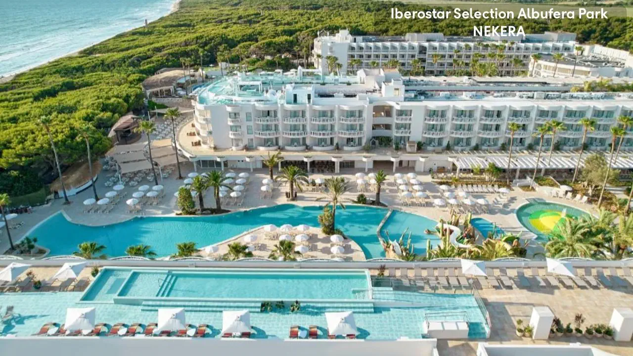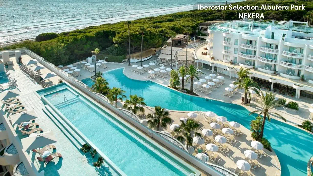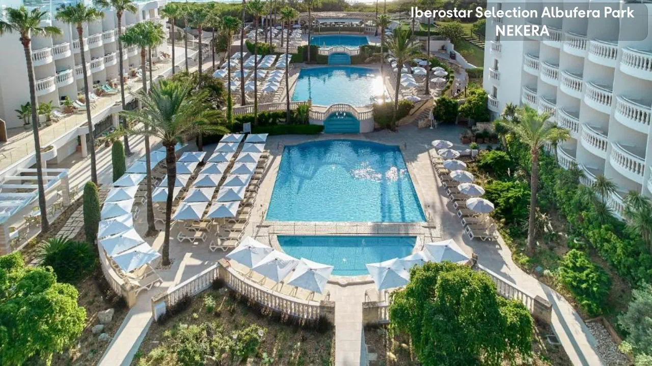 Hotel Iberostar Selection Albufera Park to czterogwiazdkowy hotel położony bezpośrednio przy jednej z najpiękniejszych plaż Majorki, Playa de Muro. Idealny dla rodzin z dziećmi, oferuje szeroki wybór atrakcji, w tym siedem basenów, w tym jeden na dachu z panoramicznym widokiem na morze. Dla najmłodszych przygotowano program Star Camp z aktywnościami takimi jak zajęcia DJ-skie, paddleboarding czy wieczorne kino pod gołym niebem. Goście mogą korzystać z sześciu restauracji serwujących dania kuchni międzynarodowej oraz trzech barów, w tym lodziarni w stylu retro. Hotel stawia na zrównoważony rozwój – wszystkie pokoje są wolne od plastiku jednorazowego użytku, a restauracje serwują tylko odpowiedzialnie pozyskiwane ryby i owoce morza. Dodatkowo, obiekt zapewnia dostęp do spa, centrum fitness oraz organizuje różnorodne zajęcia sportowe i rekreacyjne. Dzięki dogodnej lokalizacji w pobliżu Parku Naturalnego Albufera i możliwości wypożyczenia rowerów, goście mogą aktywnie spędzać czas na świeżym powietrzu.