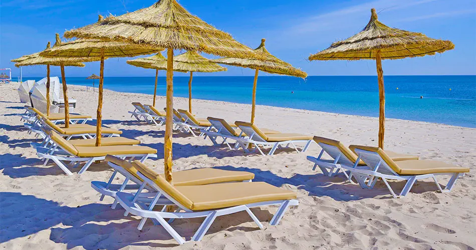 - Szeroka, piaszczysta, bezpośrednio przy hotelu - Leżaki, parasole i materace - bezpłatnie, - Ręczniki za depozytem ok. 10 EUR - Bar na plaży - bezpłatny (czynny od 15.05 do 31.10, dostępne są przekąski oraz napoje)