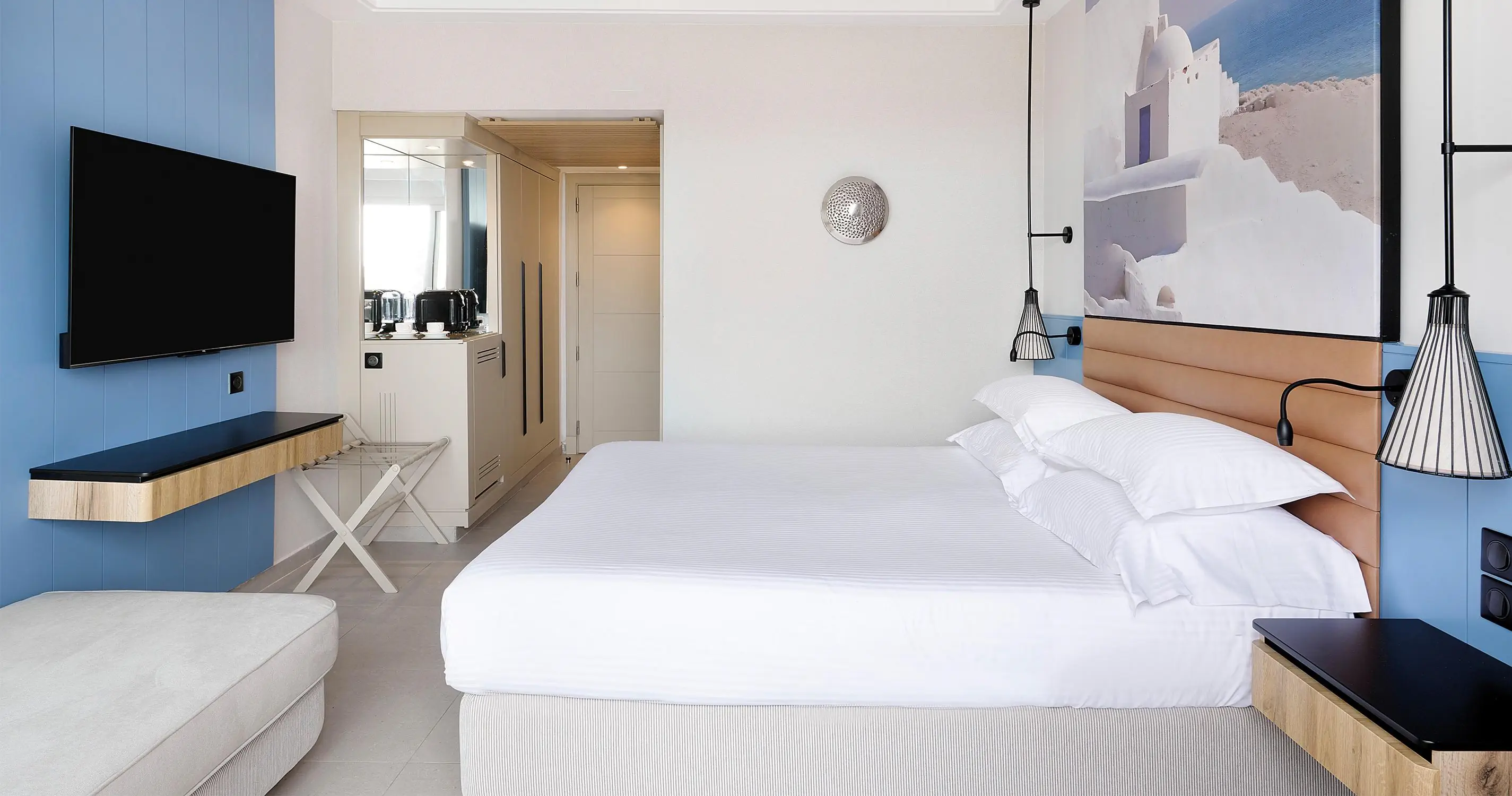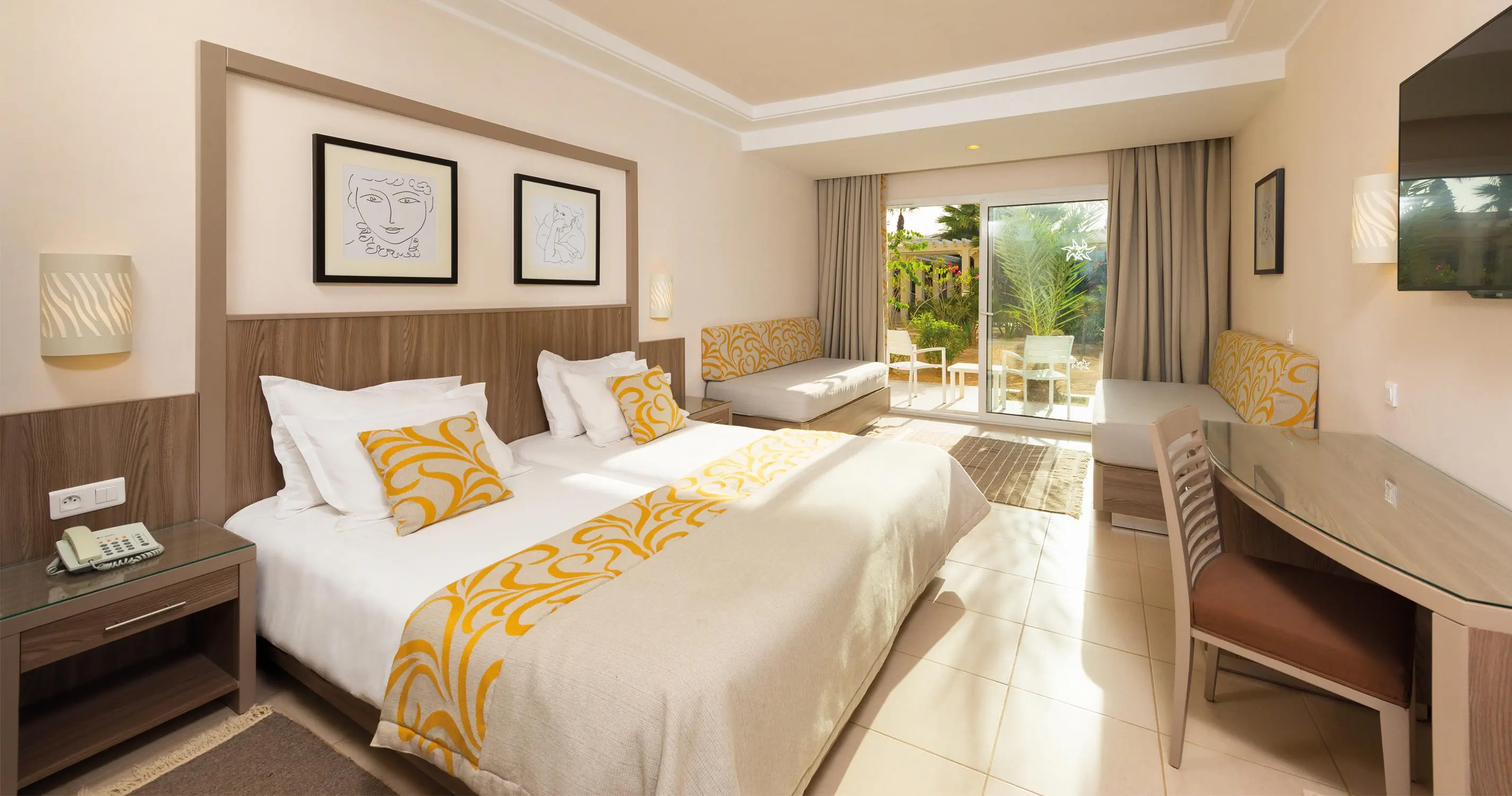 Pokój Double ok 16 m² Klimatyzacja (15.06-15.09) Łazienka z prysznicem lub wanną, toaleta Telefon Sejf (płatny) Minilodówka- bezpłatna Łóżeczko dziecięce na życzenie (bezpłatnie) Balkon lub taras Pokój Double Garden View - z widokiem na ogród Pokój Double Pool View - z widokiem na basen Pokój Double Side Sea View - z bocznym widokiem na morze Pokój Family GV Wyposażenie jak w pokoju Double Pokój jest bardziej przestronny od pokoju standard Maksymane obłożenie do 4 osób dorosłych Pokój Family Wyposażenie jak w pokoju Double Maksymalne obłożenie do 2 dorosłych + 2 dzieci Double Interconnecting ok 32 m² Wyposażenie jak w pokoju Double 2 pokoje oddzielone dziwiami Pokój Double Sea View Premium Terrace ok. 24 m² Wyposażenie jak w pokoju Double Z widokiem na morze Bungalow Superior Private Garden ok. 64 m² Wyposażenie jak w pokoju Double Maksymalne obłożenie od 2 dorosłych do 4 dorosłych