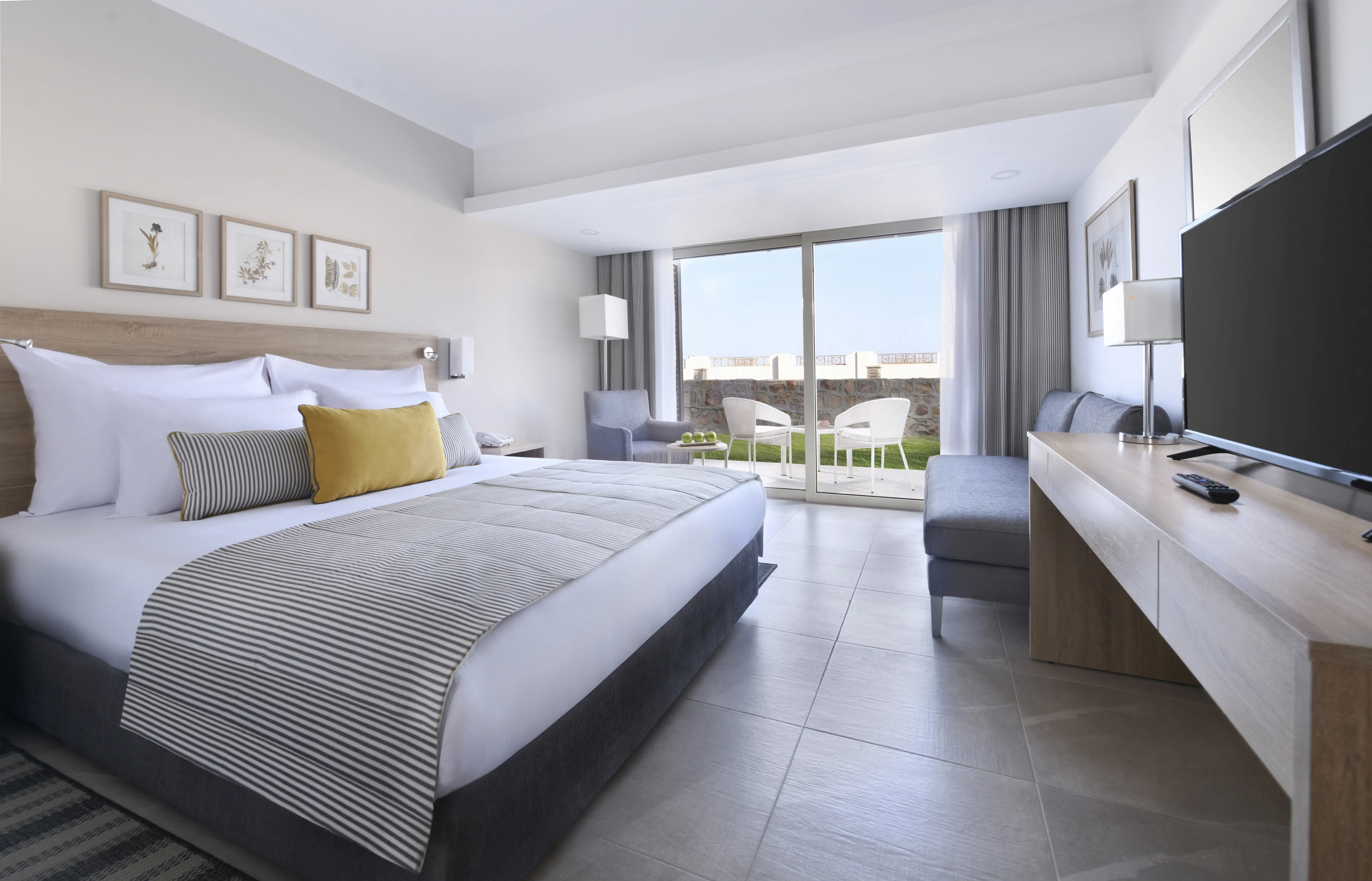 Dla max. 2 osób, Przestrzeń zewnętrzna: Balkon, Kanały telewizji: Polski, Angielski, Telefon w pokoju, prysznic, Powierzchnia pokoju: ok. 33 m2, Rodzaj podłogi: płytki, Sprzątanie codziennie, 1 sypialnia, Maksymalna liczba osób dorosłych: 2, Maksymalna liczba dzieci: 1, Widok na basen i morze, Liczba łazienek: 1, Liczba toalet: 1, Zestaw do parzenia kawy i herbaty, Klimatyzacja: Klimatyzacja indywidualna