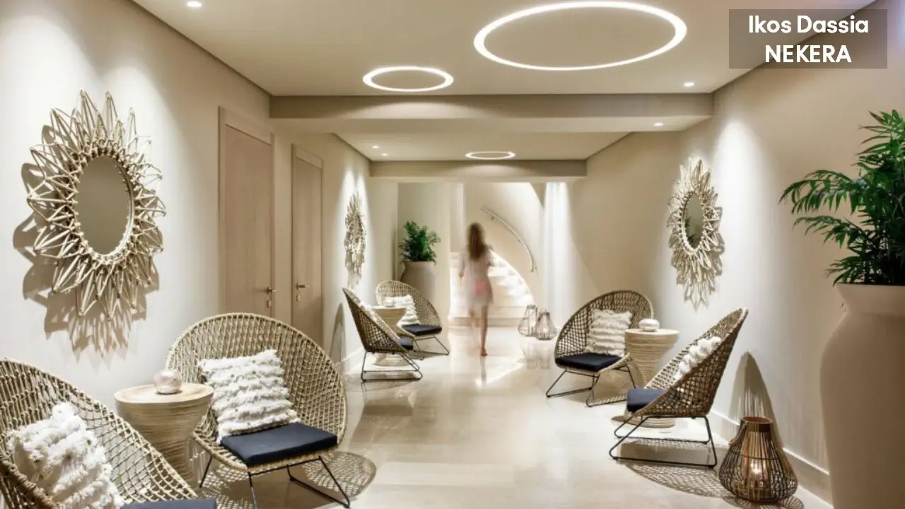 2 kryte baseny (w tym jeden dla osób dorosłych), sauna, łaźnia parowa, whirlpool. Za dodatkową opłatą: bogata oferta masaży i zabiegów pielęgnacyjnych w Ikos Spa.