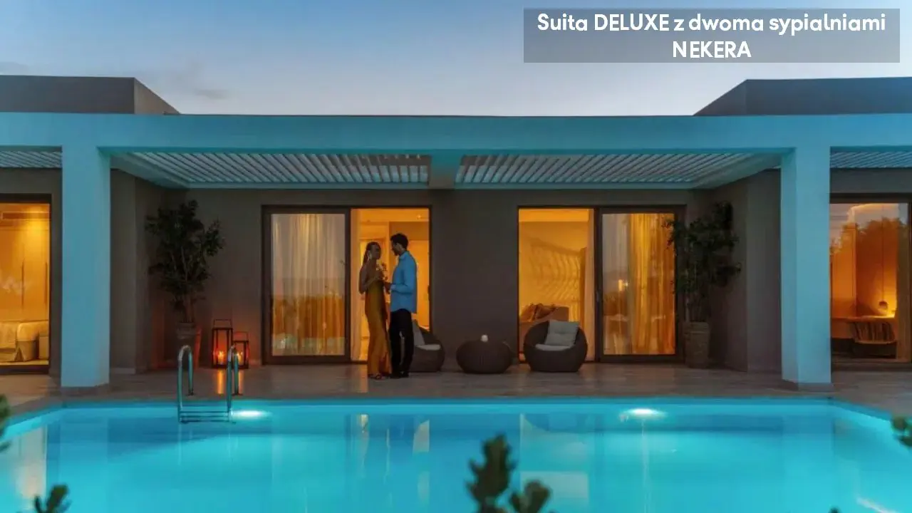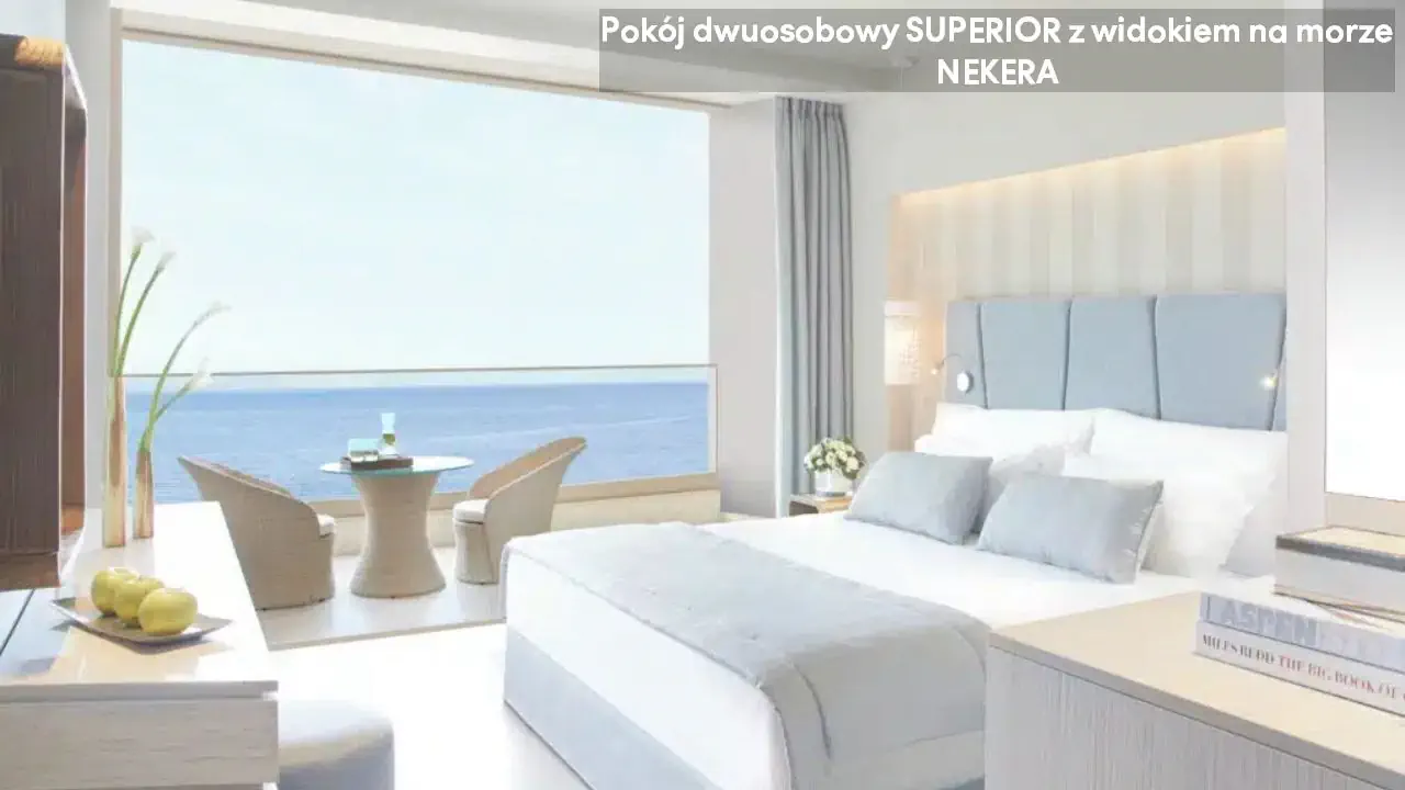 luksusowe pokoje w budynkach głównych, bungalowach i suitach. Klimatyzacja, smart-TV, telefon, sejf, minibar, ekspres do kawy, balkon lub taras. Wanna lub prysznic, WC, suszarka, szlafrok, kapcie. Pokoje Superior: ok. 25 m2. Pokoje Superior z widokiem na morze. Pokoje – wariant ekonomiczny: ok. 23 m2. Pokoje – wariant ekonomiczny z widokiem na morze. Pokoje rodzinne: ok. 50 m2; dwa pokoje superior z drzwiami łączącymi. Pokoje rodzinne z widokiem na morze. Junior Suite: ok. 35 m2. Junior Suite z widokiem na morze. Junior suite z panoramicznym widokiem na morze. Junior Suite Deluxe z widokiem na ogród: ok. 40 m2; jedno przestronne pomieszczenie dzienno-sypialne, balkon. Junior Suite Deluxe z prywatnym basenem: ok. 37 m2. Deluxe Bungalow Suite z prywatnym basenem: ok. 50 m2; w pierwszej linii od plaży. Deluxe Bungalow Suite z widokiem na basen: ok. 85 m2; pomieszczenie dzienno-sypialne, dwie sypialnie. Deluxe Bungalow Suite z widokiem na morze. Deluxe Bungalow Suite z widokiem na morze i prywatnym basenem: ok. 90 m2, pomieszczenie dzienno-sypialne, dwie sypialnie, taras.
