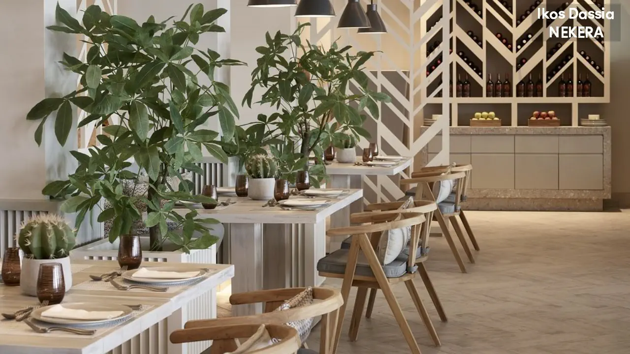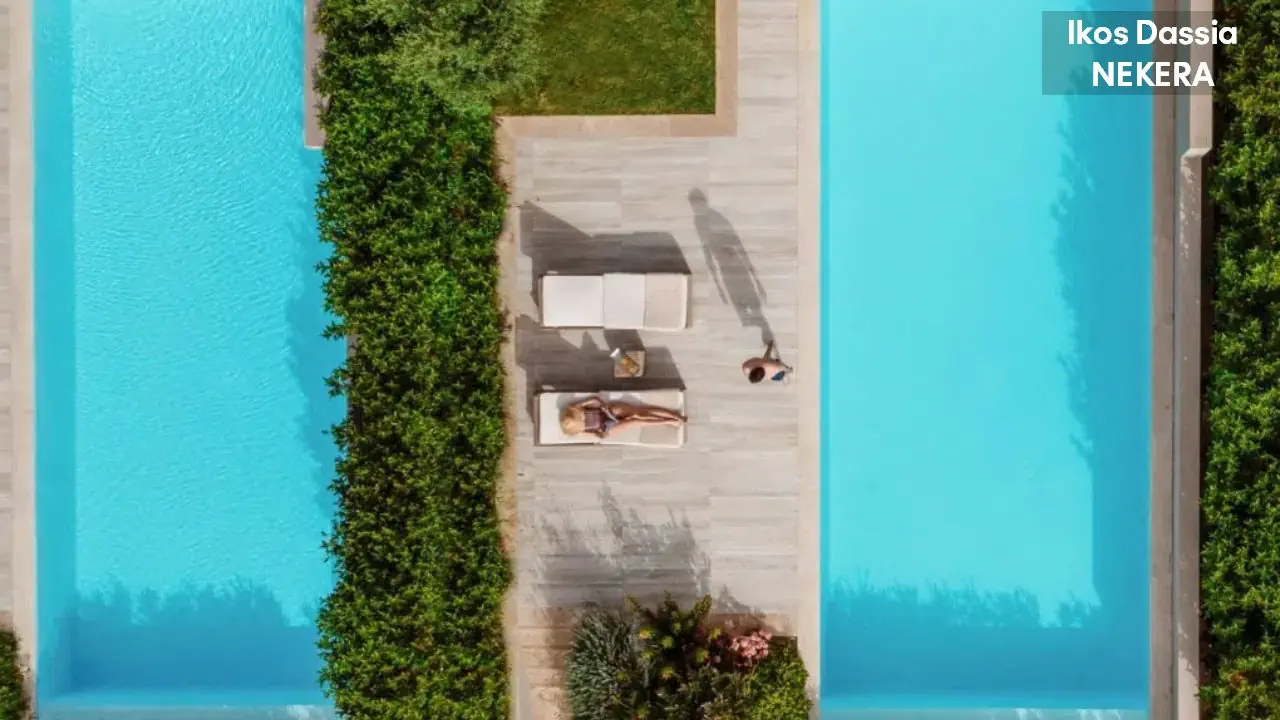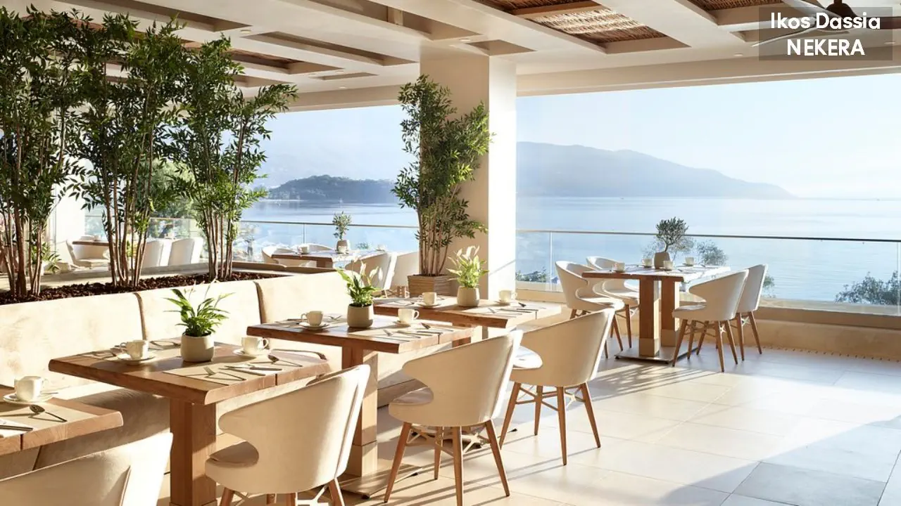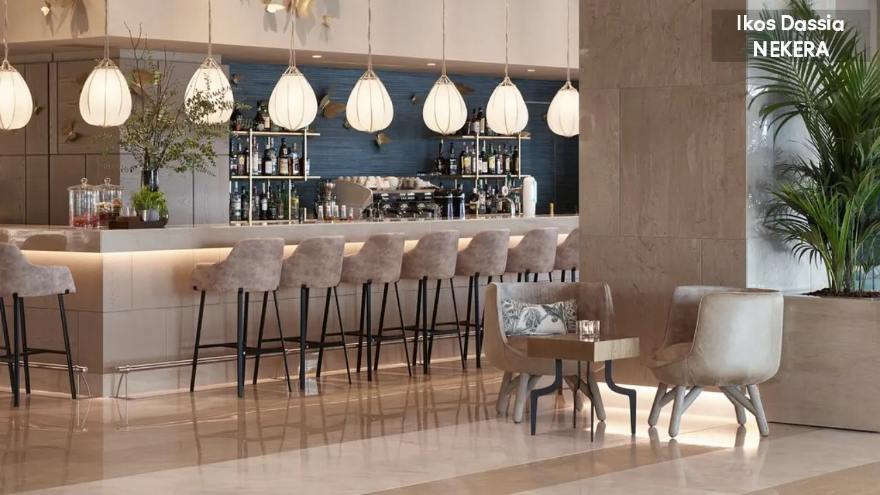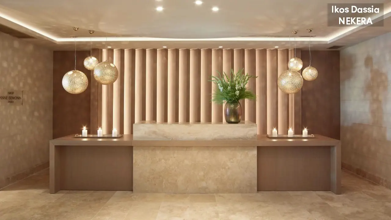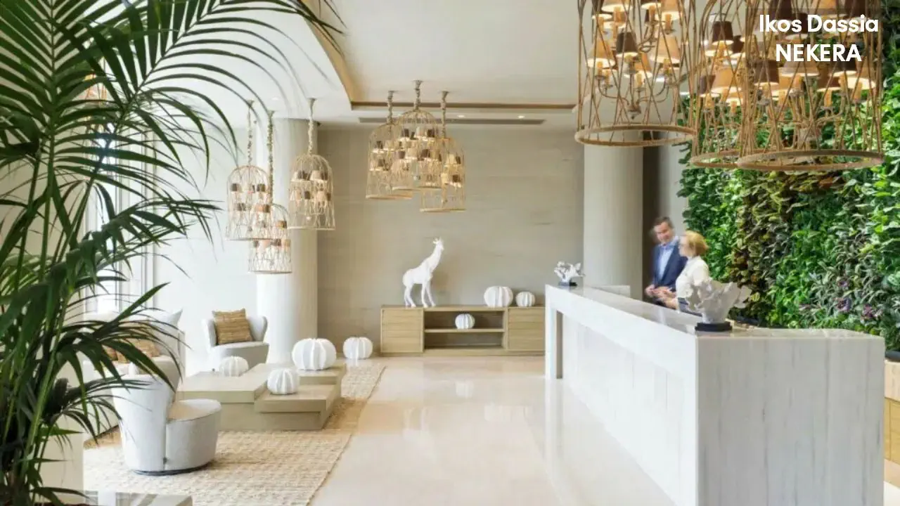 luksusowy resort oferuje 411 pokoi w 2 budynkach głównych, strefie bungalowów i ekskluzywnej strefie Ikos Deluxe Collection ze suitami. Do dyspozycji Gości: lobby, recepcja, windy, 2 restauracje główne, 6 restauracji a la carte, 10 barów. W ogrodzie 2 duże baseny, jeden basen w strefie Deluxe Collection, 2 baseny dla dorosłych. Leżaki, parasole słoneczne w cenie.